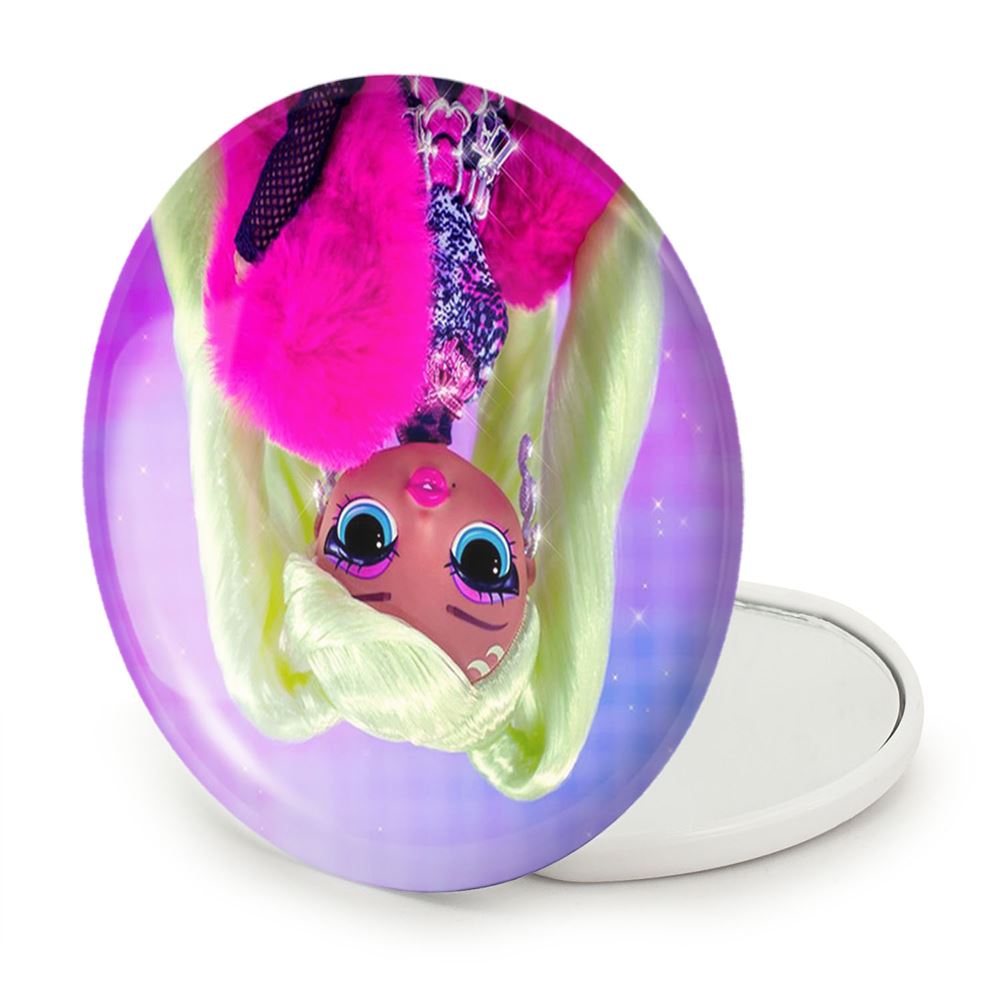 آینه های تاشو عروسک LOL خندالو، از جنس پلاستیک فشرده ABS تولید شده و به رنگ سفید می باشد. یکی از آینه ها ابعاد واقعی را نشان داده و دیگری با قابلیت بزرگنمایی، جزئیات را بهتر نمایش می دهد. ابعاد هر یک از آینه ها، دایره ای به قطر 7.5 سانت می باشد که نه خیلی بزرگ و غیر قابل استفاده در کیف آرایشی ست و نه خیلی کوچک که تصویر خاصی در آن مشاهده نشود. آینه تاشو عروسک LOL سایزی استاندارد و کارآمد دارد و در هر کیفی جا میگیرد. چاپ طرح بوسیله چاپگرهای دیجیتال شش رنگ با شفافیت و کیفیتی مثال زدنی بر روی یک وجه از بدنه ی آینه انجام گرفته و با روکش لمینت حرارتی پوشیده شده که در مقابل آسیب و خط و خش مقاوم بوده و کیفیت بالایی دارد. درب آینه بوسیله قفل بدنه ی آن، باز نمی ماند و کاملا بسته می شود و مناسب قرار گیری در کیف لوازم آرایش و کیف های کوچک دستی نیز هست. آینه های تاشو عروسک LOL خندالو با تنوع طرحی بسیار بالا، سلیقه هر نوع مخاطبی را تامین میکند.
