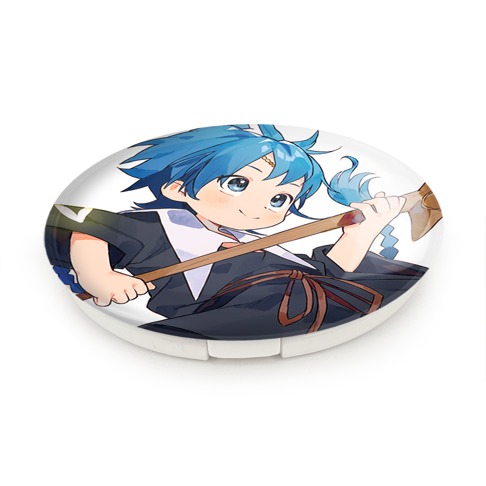 آینه های تاشو علائدین انیمه ماگی هزارتوی سحر و جادو خندالو، از جنس پلاستیک فشرده ABS تولید شده و به رنگ سفید می باشد. یکی از آینه ها ابعاد واقعی را نشان داده و دیگری با قابلیت بزرگنمایی، جزئیات را بهتر نمایش می دهد. ابعاد هر یک از آینه ها، دایره ای به قطر 7.5 سانت می باشد که نه خیلی بزرگ و غیر قابل استفاده در کیف آرایشی ست و نه خیلی کوچک که تصویر خاصی در آن مشاهده نشود. آینه تاشو علائدین انیمه ماگی هزارتوی سحر و جادو سایزی استاندارد و کارآمد دارد و در هر کیفی جا میگیرد. چاپ طرح بوسیله چاپگرهای دیجیتال شش رنگ با شفافیت و کیفیتی مثال زدنی بر روی یک وجه از بدنه ی آینه انجام گرفته و با روکش لمینت حرارتی پوشیده شده که در مقابل آسیب و خط و خش مقاوم بوده و کیفیت بالایی دارد. درب آینه بوسیله قفل بدنه ی آن، باز نمی ماند و کاملا بسته می شود و مناسب قرار گیری در کیف لوازم آرایش و کیف های کوچک دستی نیز هست. آینه های تاشو علائدین انیمه ماگی هزارتوی سحر و جادو خندالو با تنوع طرحی بسیار بالا، سلیقه هر نوع مخاطبی را تامین میکند.