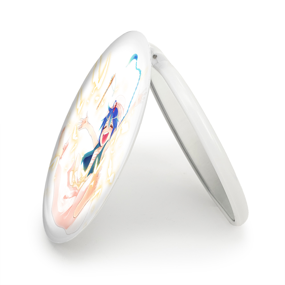 آینه های تاشو علائدین انیمه ماگی هزارتوی سحر و جادو خندالو، از جنس پلاستیک فشرده ABS تولید شده و به رنگ سفید می باشد. یکی از آینه ها ابعاد واقعی را نشان داده و دیگری با قابلیت بزرگنمایی، جزئیات را بهتر نمایش می دهد. ابعاد هر یک از آینه ها، دایره ای به قطر 7.5 سانت می باشد که نه خیلی بزرگ و غیر قابل استفاده در کیف آرایشی ست و نه خیلی کوچک که تصویر خاصی در آن مشاهده نشود. آینه تاشو علائدین انیمه ماگی هزارتوی سحر و جادو سایزی استاندارد و کارآمد دارد و در هر کیفی جا میگیرد. چاپ طرح بوسیله چاپگرهای دیجیتال شش رنگ با شفافیت و کیفیتی مثال زدنی بر روی یک وجه از بدنه ی آینه انجام گرفته و با روکش لمینت حرارتی پوشیده شده که در مقابل آسیب و خط و خش مقاوم بوده و کیفیت بالایی دارد. درب آینه بوسیله قفل بدنه ی آن، باز نمی ماند و کاملا بسته می شود و مناسب قرار گیری در کیف لوازم آرایش و کیف های کوچک دستی نیز هست. آینه های تاشو علائدین انیمه ماگی هزارتوی سحر و جادو خندالو با تنوع طرحی بسیار بالا، سلیقه هر نوع مخاطبی را تامین میکند.