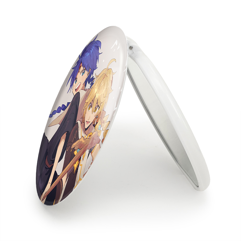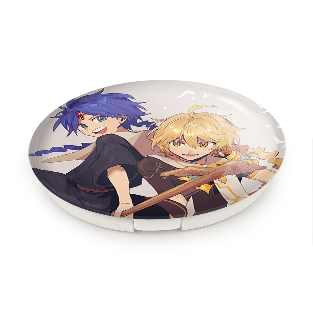 آینه های تاشو علیبابا و علائدین انیمه ماگی هزارتوی سحر و جادو خندالو، از جنس پلاستیک فشرده ABS تولید شده و به رنگ سفید می باشد. یکی از آینه ها ابعاد واقعی را نشان داده و دیگری با قابلیت بزرگنمایی، جزئیات را بهتر نمایش می دهد. ابعاد هر یک از آینه ها، دایره ای به قطر 7.5 سانت می باشد که نه خیلی بزرگ و غیر قابل استفاده در کیف آرایشی ست و نه خیلی کوچک که تصویر خاصی در آن مشاهده نشود. آینه تاشو علیبابا و علائدین انیمه ماگی هزارتوی سحر و جادو سایزی استاندارد و کارآمد دارد و در هر کیفی جا میگیرد. چاپ طرح بوسیله چاپگرهای دیجیتال شش رنگ با شفافیت و کیفیتی مثال زدنی بر روی یک وجه از بدنه ی آینه انجام گرفته و با روکش لمینت حرارتی پوشیده شده که در مقابل آسیب و خط و خش مقاوم بوده و کیفیت بالایی دارد. درب آینه بوسیله قفل بدنه ی آن، باز نمی ماند و کاملا بسته می شود و مناسب قرار گیری در کیف لوازم آرایش و کیف های کوچک دستی نیز هست. آینه های تاشو علیبابا و علائدین انیمه ماگی هزارتوی سحر و جادو خندالو با تنوع طرحی بسیار بالا، سلیقه هر نوع مخاطبی را تامین میکند.