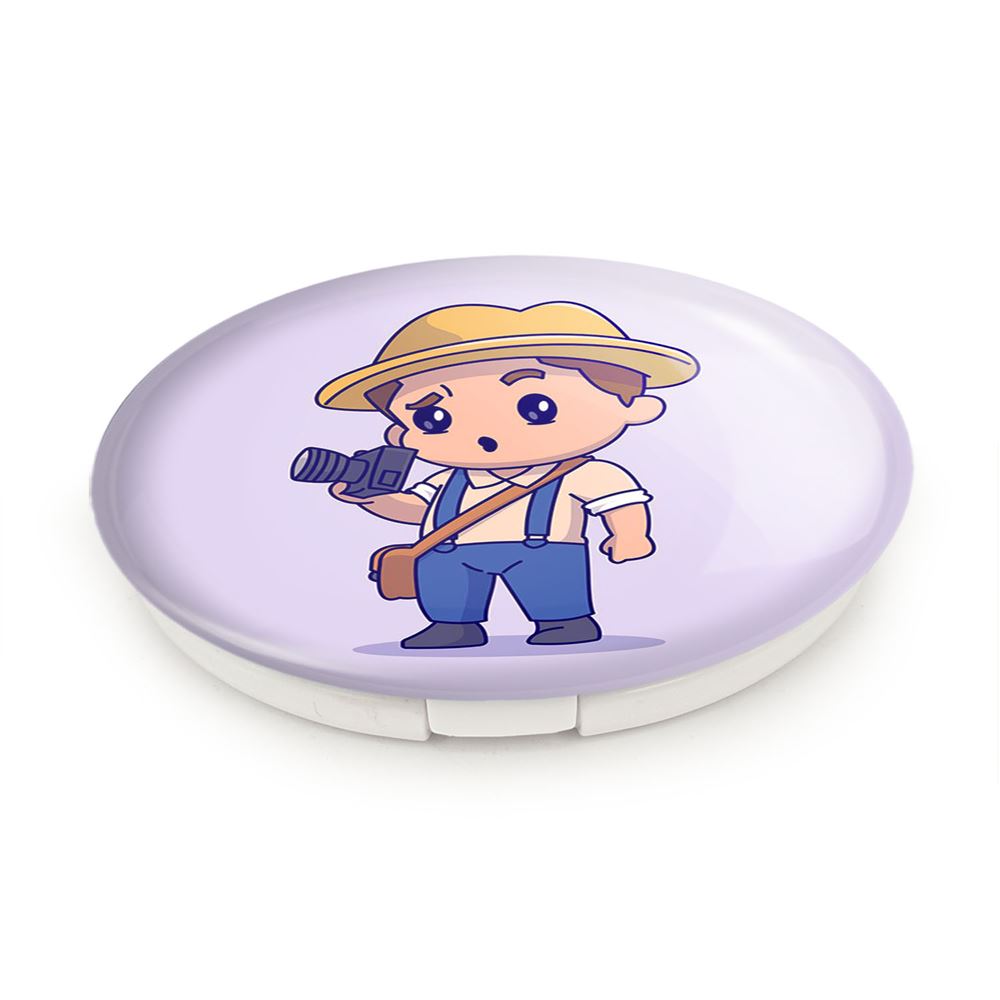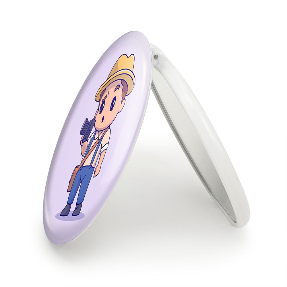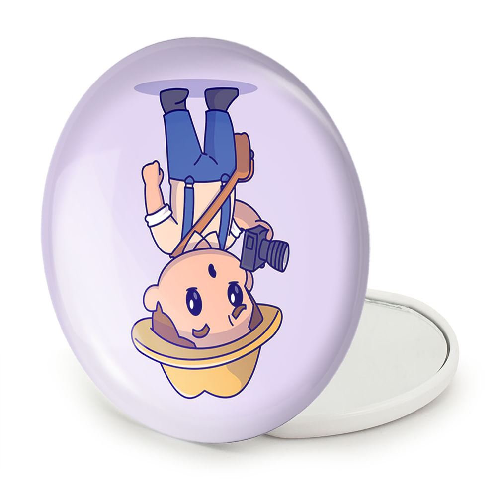 آینه های تاشو عکاس خندالو، از جنس پلاستیک فشرده ABS تولید شده و به رنگ سفید می باشد. یکی از آینه ها ابعاد واقعی را نشان داده و دیگری با قابلیت بزرگنمایی، جزئیات را بهتر نمایش می دهد. ابعاد هر یک از آینه ها، دایره ای به قطر 7.5 سانت می باشد که نه خیلی بزرگ و غیر قابل استفاده در کیف آرایشی ست و نه خیلی کوچک که تصویر خاصی در آن مشاهده نشود. آینه تاشو عکاس سایزی استاندارد و کارآمد دارد و در هر کیفی جا میگیرد. چاپ طرح بوسیله چاپگرهای دیجیتال شش رنگ با شفافیت و کیفیتی مثال زدنی بر روی یک وجه از بدنه ی آینه انجام گرفته و با روکش لمینت حرارتی پوشیده شده که در مقابل آسیب و خط و خش مقاوم بوده و کیفیت بالایی دارد. درب آینه بوسیله قفل بدنه ی آن، باز نمی ماند و کاملا بسته می شود و مناسب قرار گیری در کیف لوازم آرایش و کیف های کوچک دستی نیز هست. آینه های تاشو عکاس خندالو با تنوع طرحی بسیار بالا، سلیقه هر نوع مخاطبی را تامین میکند.