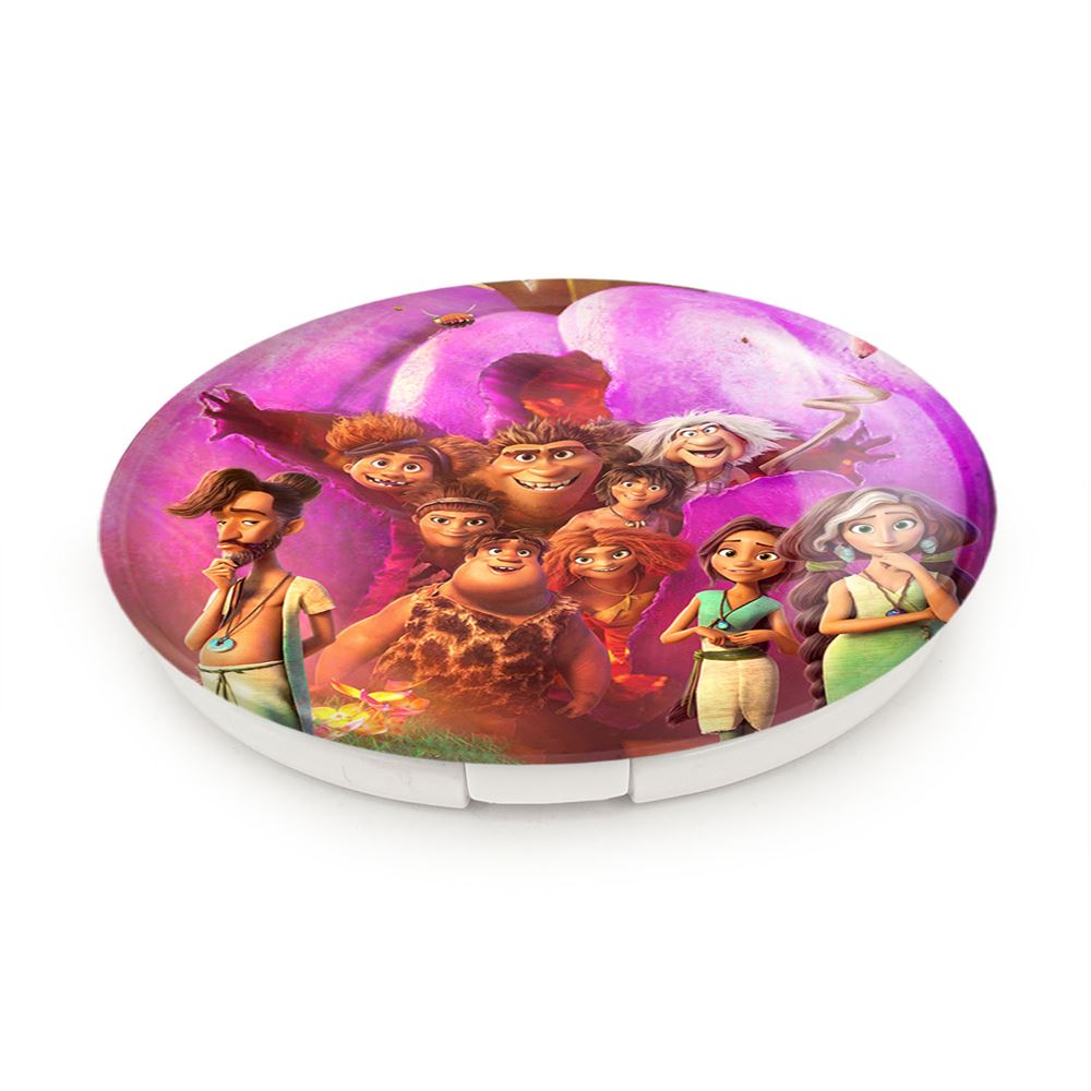 آینه های تاشو غارنشینان عصر جدید خندالو، از جنس پلاستیک فشرده ABS تولید شده و به رنگ سفید می باشد. یکی از آینه ها ابعاد واقعی را نشان داده و دیگری با قابلیت بزرگنمایی، جزئیات را بهتر نمایش می دهد. ابعاد هر یک از آینه ها، دایره ای به قطر 7.5 سانت می باشد که نه خیلی بزرگ و غیر قابل استفاده در کیف آرایشی ست و نه خیلی کوچک که تصویر خاصی در آن مشاهده نشود. آینه تاشو غارنشینان عصر جدید سایزی استاندارد و کارآمد دارد و در هر کیفی جا میگیرد. چاپ طرح بوسیله چاپگرهای دیجیتال شش رنگ با شفافیت و کیفیتی مثال زدنی بر روی یک وجه از بدنه ی آینه انجام گرفته و با روکش لمینت حرارتی پوشیده شده که در مقابل آسیب و خط و خش مقاوم بوده و کیفیت بالایی دارد. درب آینه بوسیله قفل بدنه ی آن، باز نمی ماند و کاملا بسته می شود و مناسب قرار گیری در کیف لوازم آرایش و کیف های کوچک دستی نیز هست. آینه های تاشو غارنشینان عصر جدید خندالو با تنوع طرحی بسیار بالا، سلیقه هر نوع مخاطبی را تامین میکند.