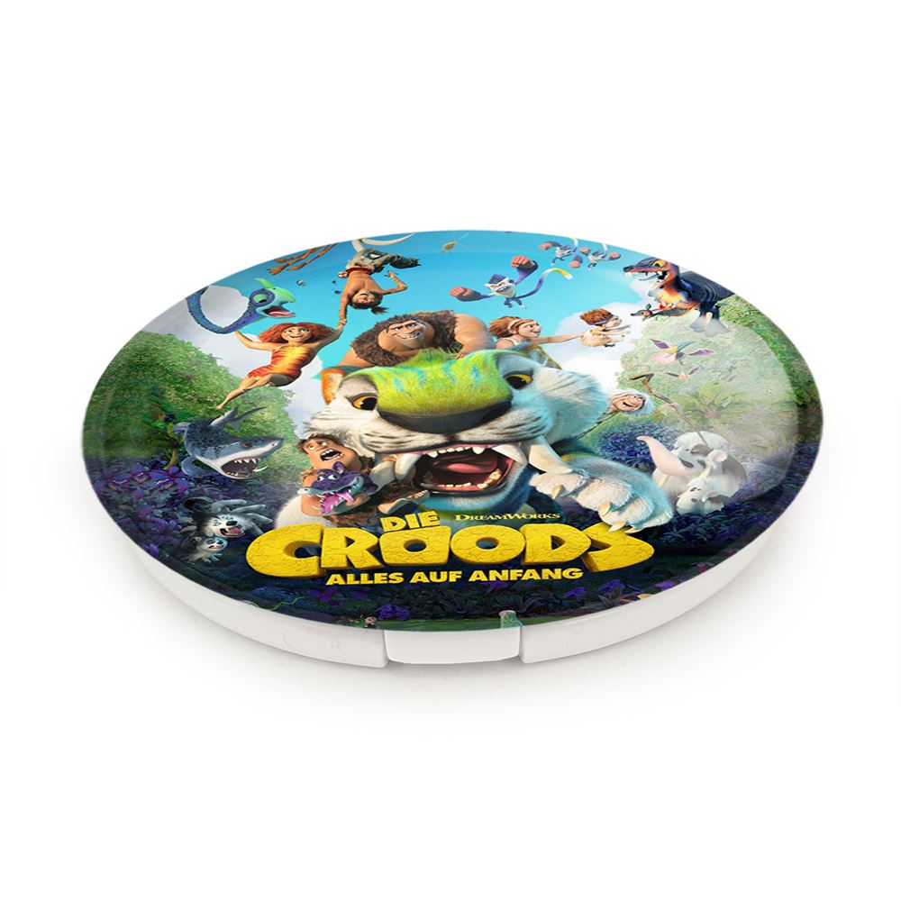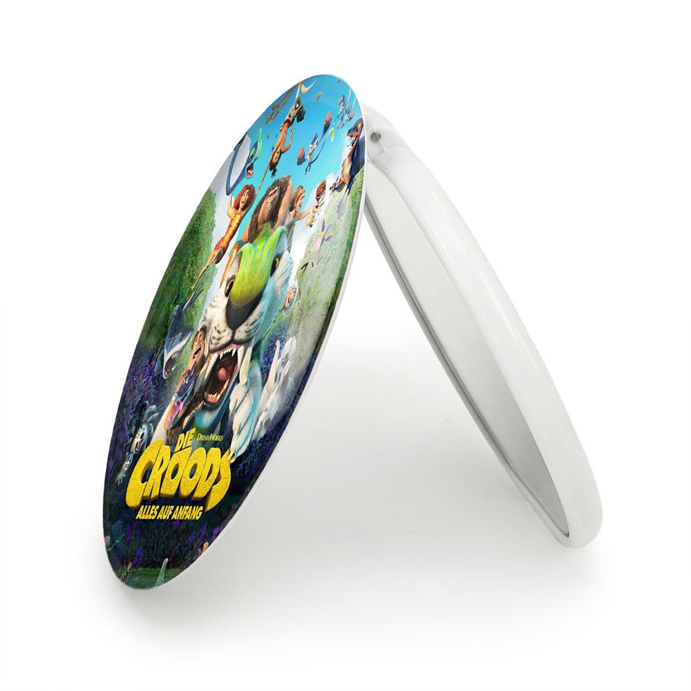 آینه های تاشو غارنشینان عصر جدید خندالو، از جنس پلاستیک فشرده ABS تولید شده و به رنگ سفید می باشد. یکی از آینه ها ابعاد واقعی را نشان داده و دیگری با قابلیت بزرگنمایی، جزئیات را بهتر نمایش می دهد. ابعاد هر یک از آینه ها، دایره ای به قطر 7.5 سانت می باشد که نه خیلی بزرگ و غیر قابل استفاده در کیف آرایشی ست و نه خیلی کوچک که تصویر خاصی در آن مشاهده نشود. آینه تاشو غارنشینان عصر جدید سایزی استاندارد و کارآمد دارد و در هر کیفی جا میگیرد. چاپ طرح بوسیله چاپگرهای دیجیتال شش رنگ با شفافیت و کیفیتی مثال زدنی بر روی یک وجه از بدنه ی آینه انجام گرفته و با روکش لمینت حرارتی پوشیده شده که در مقابل آسیب و خط و خش مقاوم بوده و کیفیت بالایی دارد. درب آینه بوسیله قفل بدنه ی آن، باز نمی ماند و کاملا بسته می شود و مناسب قرار گیری در کیف لوازم آرایش و کیف های کوچک دستی نیز هست. آینه های تاشو غارنشینان عصر جدید خندالو با تنوع طرحی بسیار بالا، سلیقه هر نوع مخاطبی را تامین میکند.