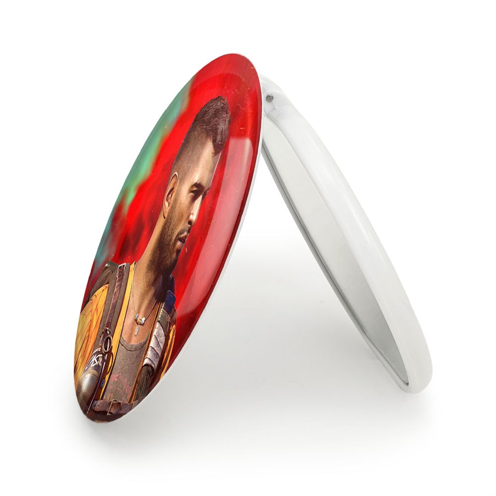 آینه های تاشو فار شیش فارکرای خندالو، از جنس پلاستیک فشرده ABS تولید شده و به رنگ سفید می باشد. یکی از آینه ها ابعاد واقعی را نشان داده و دیگری با قابلیت بزرگنمایی، جزئیات را بهتر نمایش می دهد. ابعاد هر یک از آینه ها، دایره ای به قطر 7.5 سانت می باشد که نه خیلی بزرگ و غیر قابل استفاده در کیف آرایشی ست و نه خیلی کوچک که تصویر خاصی در آن مشاهده نشود. آینه تاشو فار شیش فارکرای سایزی استاندارد و کارآمد دارد و در هر کیفی جا میگیرد. چاپ طرح بوسیله چاپگرهای دیجیتال شش رنگ با شفافیت و کیفیتی مثال زدنی بر روی یک وجه از بدنه ی آینه انجام گرفته و با روکش لمینت حرارتی پوشیده شده که در مقابل آسیب و خط و خش مقاوم بوده و کیفیت بالایی دارد. درب آینه بوسیله قفل بدنه ی آن، باز نمی ماند و کاملا بسته می شود و مناسب قرار گیری در کیف لوازم آرایش و کیف های کوچک دستی نیز هست. آینه های تاشو فار شیش فارکرای خندالو با تنوع طرحی بسیار بالا، سلیقه هر نوع مخاطبی را تامین میکند.