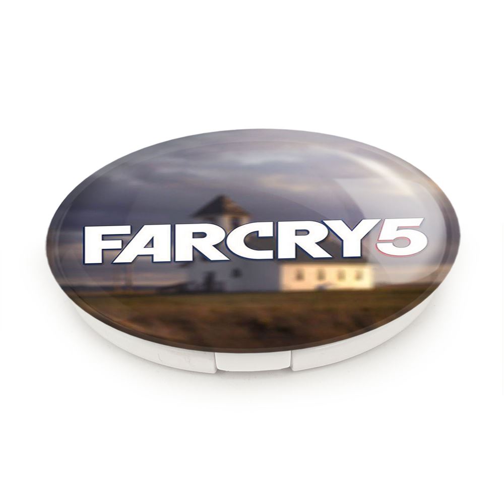 آینه های تاشو فار پنج فارکرای خندالو، از جنس پلاستیک فشرده ABS تولید شده و به رنگ سفید می باشد. یکی از آینه ها ابعاد واقعی را نشان داده و دیگری با قابلیت بزرگنمایی، جزئیات را بهتر نمایش می دهد. ابعاد هر یک از آینه ها، دایره ای به قطر 7.5 سانت می باشد که نه خیلی بزرگ و غیر قابل استفاده در کیف آرایشی ست و نه خیلی کوچک که تصویر خاصی در آن مشاهده نشود. آینه تاشو فار پنج فارکرای سایزی استاندارد و کارآمد دارد و در هر کیفی جا میگیرد. چاپ طرح بوسیله چاپگرهای دیجیتال شش رنگ با شفافیت و کیفیتی مثال زدنی بر روی یک وجه از بدنه ی آینه انجام گرفته و با روکش لمینت حرارتی پوشیده شده که در مقابل آسیب و خط و خش مقاوم بوده و کیفیت بالایی دارد. درب آینه بوسیله قفل بدنه ی آن، باز نمی ماند و کاملا بسته می شود و مناسب قرار گیری در کیف لوازم آرایش و کیف های کوچک دستی نیز هست. آینه های تاشو فار پنج فارکرای خندالو با تنوع طرحی بسیار بالا، سلیقه هر نوع مخاطبی را تامین میکند.