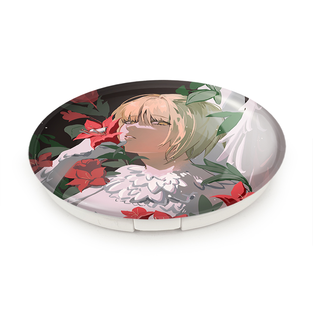 آینه های تاشو فالین انیمه خوشمزه در سیاه چال خندالو، از جنس پلاستیک فشرده ABS تولید شده و به رنگ سفید می باشد. یکی از آینه ها ابعاد واقعی را نشان داده و دیگری با قابلیت بزرگنمایی، جزئیات را بهتر نمایش می دهد. ابعاد هر یک از آینه ها، دایره ای به قطر 7.5 سانت می باشد که نه خیلی بزرگ و غیر قابل استفاده در کیف آرایشی ست و نه خیلی کوچک که تصویر خاصی در آن مشاهده نشود. آینه تاشو فالین انیمه خوشمزه در سیاه چال سایزی استاندارد و کارآمد دارد و در هر کیفی جا میگیرد. چاپ طرح بوسیله چاپگرهای دیجیتال شش رنگ با شفافیت و کیفیتی مثال زدنی بر روی یک وجه از بدنه ی آینه انجام گرفته و با روکش لمینت حرارتی پوشیده شده که در مقابل آسیب و خط و خش مقاوم بوده و کیفیت بالایی دارد. درب آینه بوسیله قفل بدنه ی آن، باز نمی ماند و کاملا بسته می شود و مناسب قرار گیری در کیف لوازم آرایش و کیف های کوچک دستی نیز هست. آینه های تاشو فالین انیمه خوشمزه در سیاه چال خندالو با تنوع طرحی بسیار بالا، سلیقه هر نوع مخاطبی را تامین میکند.