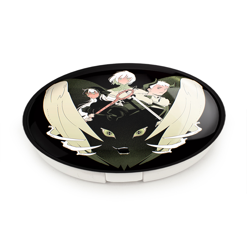 آینه های تاشو فالین و مارسیل انیمه خوشمزه در سیاه چال خندالو، از جنس پلاستیک فشرده ABS تولید شده و به رنگ سفید می باشد. یکی از آینه ها ابعاد واقعی را نشان داده و دیگری با قابلیت بزرگنمایی، جزئیات را بهتر نمایش می دهد.