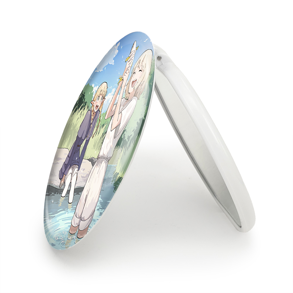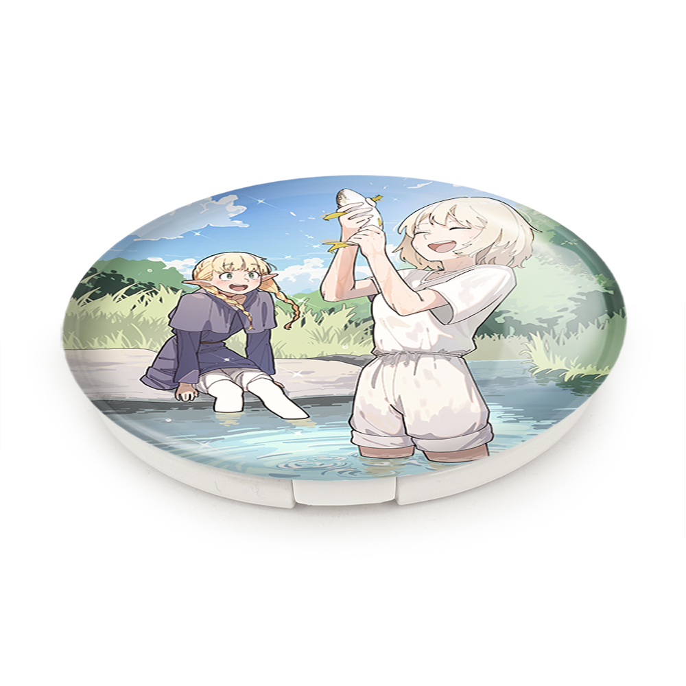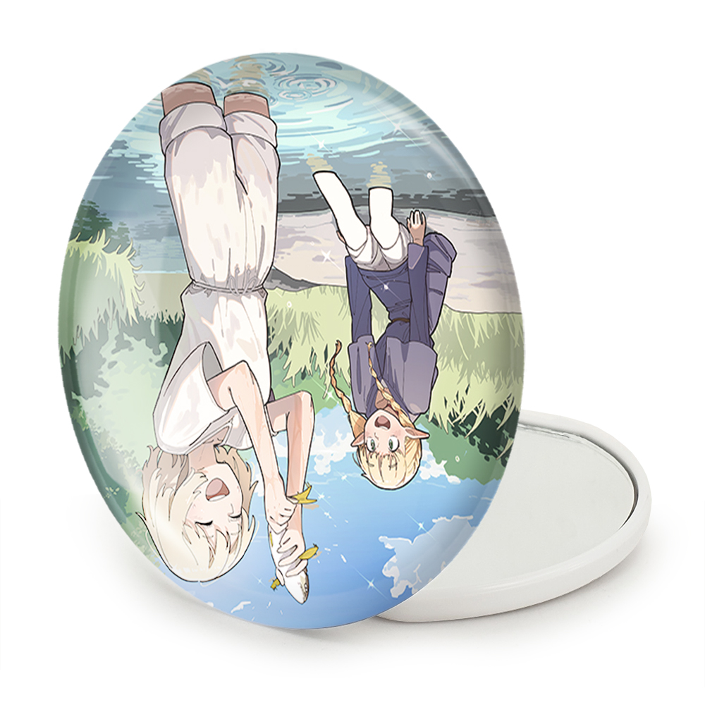 آینه های تاشو فالین و مارسیل انیمه خوشمزه در سیاه چال خندالو، از جنس پلاستیک فشرده ABS تولید شده و به رنگ سفید می باشد. یکی از آینه ها ابعاد واقعی را نشان داده و دیگری با قابلیت بزرگنمایی، جزئیات را بهتر نمایش می دهد. ابعاد هر یک از آینه ها، دایره ای به قطر 7.5 سانت می باشد که نه خیلی بزرگ و غیر قابل استفاده در کیف آرایشی ست و نه خیلی کوچک که تصویر خاصی در آن مشاهده نشود. آینه تاشو فالین و مارسیل انیمه خوشمزه در سیاه چال سایزی استاندارد و کارآمد دارد و در هر کیفی جا میگیرد. چاپ طرح بوسیله چاپگرهای دیجیتال شش رنگ با شفافیت و کیفیتی مثال زدنی بر روی یک وجه از بدنه ی آینه انجام گرفته و با روکش لمینت حرارتی پوشیده شده که در مقابل آسیب و خط و خش مقاوم بوده و کیفیت بالایی دارد. درب آینه بوسیله قفل بدنه ی آن، باز نمی ماند و کاملا بسته می شود و مناسب قرار گیری در کیف لوازم آرایش و کیف های کوچک دستی نیز هست. آینه های تاشو فالین و مارسیل انیمه خوشمزه در سیاه چال خندالو با تنوع طرحی بسیار بالا، سلیقه هر نوع مخاطبی را تامین میکند.