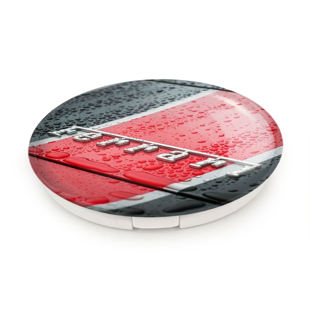 آینه های تاشو فراری Ferrari خندالو، از جنس پلاستیک فشرده ABS تولید شده و به رنگ سفید می باشد. یکی از آینه ها ابعاد واقعی را نشان داده و دیگری با قابلیت بزرگنمایی، جزئیات را بهتر نمایش می دهد.