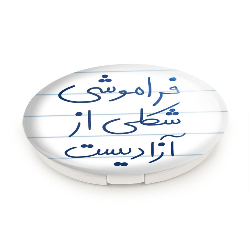 آینه های تاشو فراموشی شکلی از آزادیست خندالو، از جنس پلاستیک فشرده ABS تولید شده و به رنگ سفید می باشد. یکی از آینه ها ابعاد واقعی را نشان داده و دیگری با قابلیت بزرگنمایی، جزئیات را بهتر نمایش می دهد. ابعاد هر یک از آینه ها، دایره ای به قطر 7.5 سانت می باشد که نه خیلی بزرگ و غیر قابل استفاده در کیف آرایشی ست و نه خیلی کوچک که تصویر خاصی در آن مشاهده نشود. آینه تاشو فراموشی شکلی از آزادیست سایزی استاندارد و کارآمد دارد و در هر کیفی جا میگیرد. چاپ طرح بوسیله چاپگرهای دیجیتال شش رنگ با شفافیت و کیفیتی مثال زدنی بر روی یک وجه از بدنه ی آینه انجام گرفته و با روکش لمینت حرارتی پوشیده شده که در مقابل آسیب و خط و خش مقاوم بوده و کیفیت بالایی دارد. درب آینه بوسیله قفل بدنه ی آن، باز نمی ماند و کاملا بسته می شود و مناسب قرار گیری در کیف لوازم آرایش و کیف های کوچک دستی نیز هست. آینه های تاشو فراموشی شکلی از آزادیست خندالو با تنوع طرحی بسیار بالا، سلیقه هر نوع مخاطبی را تامین میکند.