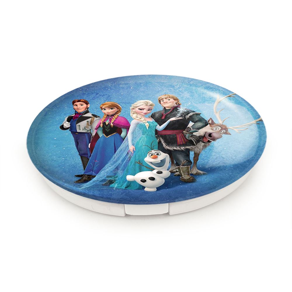 آینه های تاشو فروزن السا و آنا خندالو، از جنس پلاستیک فشرده ABS تولید شده و به رنگ سفید می باشد. یکی از آینه ها ابعاد واقعی را نشان داده و دیگری با قابلیت بزرگنمایی، جزئیات را بهتر نمایش می دهد. ابعاد هر یک از آینه ها، دایره ای به قطر 7.5 سانت می باشد که نه خیلی بزرگ و غیر قابل استفاده در کیف آرایشی ست و نه خیلی کوچک که تصویر خاصی در آن مشاهده نشود. آینه تاشو فروزن السا و آنا سایزی استاندارد و کارآمد دارد و در هر کیفی جا میگیرد. چاپ طرح بوسیله چاپگرهای دیجیتال شش رنگ با شفافیت و کیفیتی مثال زدنی بر روی یک وجه از بدنه ی آینه انجام گرفته و با روکش لمینت حرارتی پوشیده شده که در مقابل آسیب و خط و خش مقاوم بوده و کیفیت بالایی دارد. درب آینه بوسیله قفل بدنه ی آن، باز نمی ماند و کاملا بسته می شود و مناسب قرار گیری در کیف لوازم آرایش و کیف های کوچک دستی نیز هست. آینه های تاشو فروزن السا و آنا خندالو با تنوع طرحی بسیار بالا، سلیقه هر نوع مخاطبی را تامین میکند.