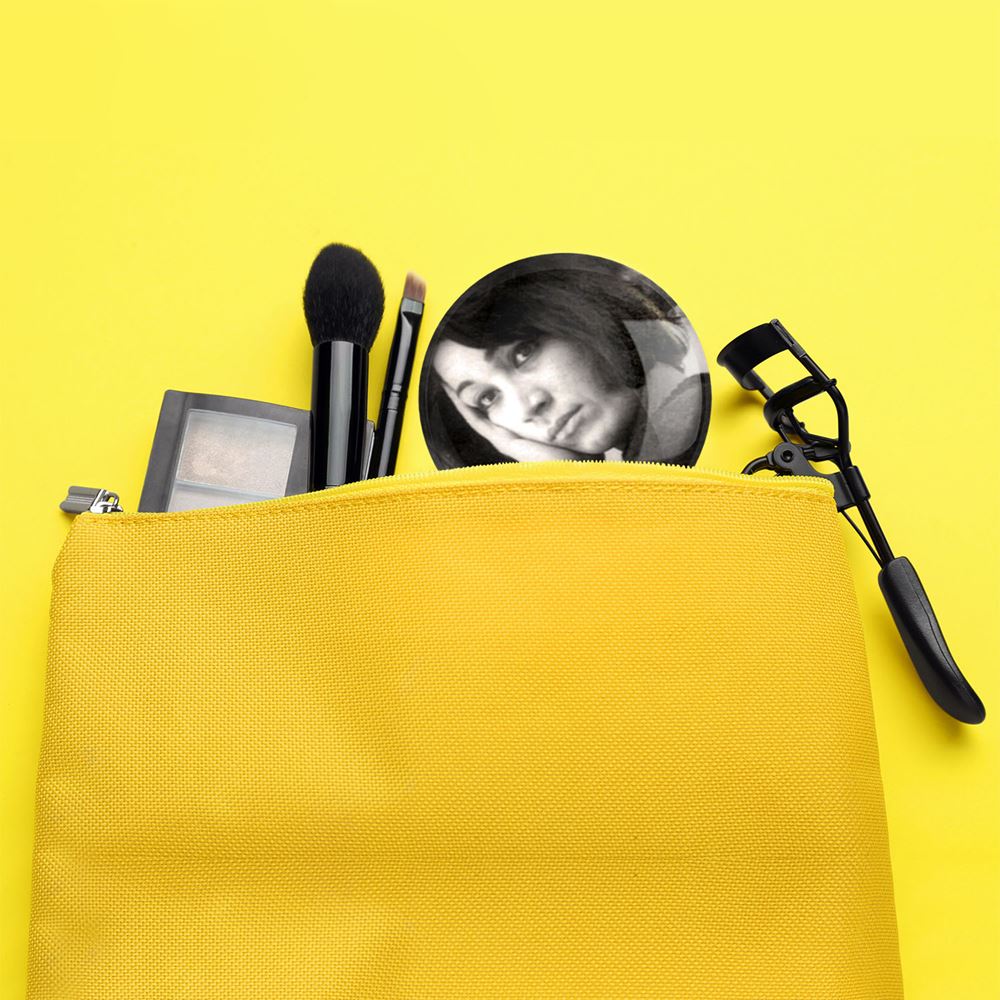 آینه های تاشو فروغ فرخزاد خندالو، از جنس پلاستیک فشرده ABS تولید شده و به رنگ سفید می باشد. یکی از آینه ها ابعاد واقعی را نشان داده و دیگری با قابلیت بزرگنمایی، جزئیات را بهتر نمایش می دهد. ابعاد هر یک از آینه ها، دایره ای به قطر 7.5 سانت می باشد که نه خیلی بزرگ و غیر قابل استفاده در کیف آرایشی ست و نه خیلی کوچک که تصویر خاصی در آن مشاهده نشود. آینه تاشو فروغ فرخزاد سایزی استاندارد و کارآمد دارد و در هر کیفی جا میگیرد. چاپ طرح بوسیله چاپگرهای دیجیتال شش رنگ با شفافیت و کیفیتی مثال زدنی بر روی یک وجه از بدنه ی آینه انجام گرفته و با روکش لمینت حرارتی پوشیده شده که در مقابل آسیب و خط و خش مقاوم بوده و کیفیت بالایی دارد. درب آینه بوسیله قفل بدنه ی آن، باز نمی ماند و کاملا بسته می شود و مناسب قرار گیری در کیف لوازم آرایش و کیف های کوچک دستی نیز هست. آینه های تاشو فروغ فرخزاد خندالو با تنوع طرحی بسیار بالا، سلیقه هر نوع مخاطبی را تامین میکند.