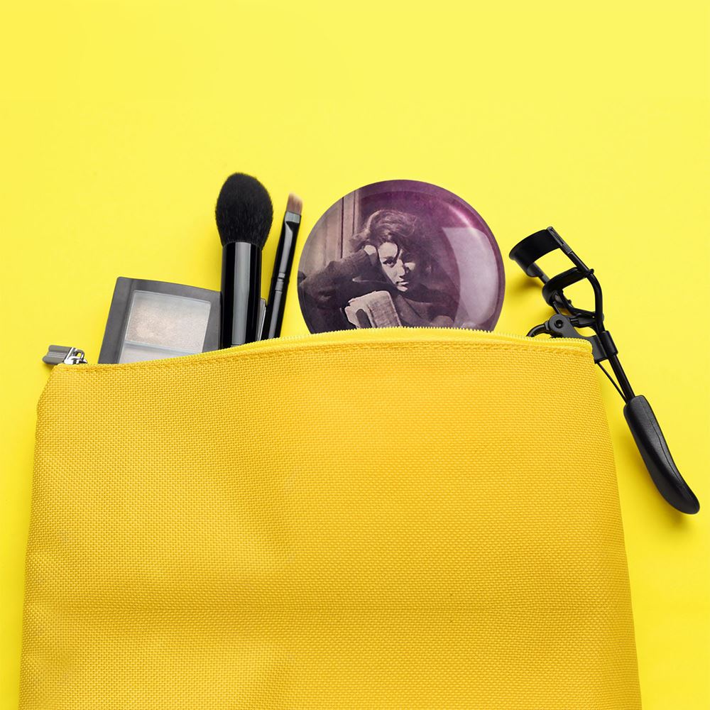 آینه های تاشو فروغ فرخزاد خندالو، از جنس پلاستیک فشرده ABS تولید شده و به رنگ سفید می باشد. یکی از آینه ها ابعاد واقعی را نشان داده و دیگری با قابلیت بزرگنمایی، جزئیات را بهتر نمایش می دهد. ابعاد هر یک از آینه ها، دایره ای به قطر 7.5 سانت می باشد که نه خیلی بزرگ و غیر قابل استفاده در کیف آرایشی ست و نه خیلی کوچک که تصویر خاصی در آن مشاهده نشود. آینه تاشو فروغ فرخزاد سایزی استاندارد و کارآمد دارد و در هر کیفی جا میگیرد. چاپ طرح بوسیله چاپگرهای دیجیتال شش رنگ با شفافیت و کیفیتی مثال زدنی بر روی یک وجه از بدنه ی آینه انجام گرفته و با روکش لمینت حرارتی پوشیده شده که در مقابل آسیب و خط و خش مقاوم بوده و کیفیت بالایی دارد. درب آینه بوسیله قفل بدنه ی آن، باز نمی ماند و کاملا بسته می شود و مناسب قرار گیری در کیف لوازم آرایش و کیف های کوچک دستی نیز هست. آینه های تاشو فروغ فرخزاد خندالو با تنوع طرحی بسیار بالا، سلیقه هر نوع مخاطبی را تامین میکند.