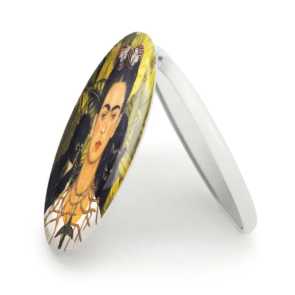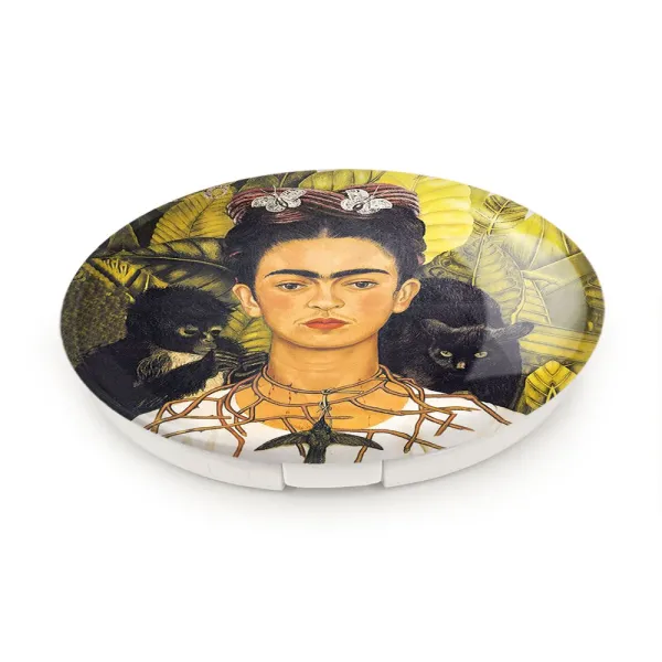 آینه های تاشو فریدا کالو Frida Kahlo خندالو، از جنس پلاستیک فشرده ABS تولید شده و به رنگ سفید می باشد. یکی از آینه ها ابعاد واقعی را نشان داده و دیگری با قابلیت بزرگنمایی، جزئیات را بهتر نمایش می دهد.