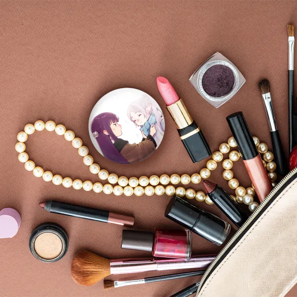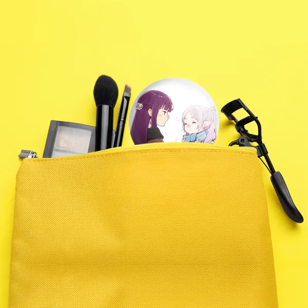 آینه های تاشو فریرن و فرن انیمه فریرن خندالو، از جنس پلاستیک فشرده ABS تولید شده و به رنگ سفید می باشد. یکی از آینه ها ابعاد واقعی را نشان داده و دیگری با قابلیت بزرگنمایی، جزئیات را بهتر نمایش می دهد. ابعاد هر یک از آینه ها، دایره ای به قطر 7.5 سانت می باشد که نه خیلی بزرگ و غیر قابل استفاده در کیف آرایشی ست و نه خیلی کوچک که تصویر خاصی در آن مشاهده نشود. آینه تاشو فریرن و فرن انیمه فریرن سایزی استاندارد و کارآمد دارد و در هر کیفی جا میگیرد. چاپ طرح بوسیله چاپگرهای دیجیتال شش رنگ با شفافیت و کیفیتی مثال زدنی بر روی یک وجه از بدنه ی آینه انجام گرفته و با روکش لمینت حرارتی پوشیده شده که در مقابل آسیب و خط و خش مقاوم بوده و کیفیت بالایی دارد. درب آینه بوسیله قفل بدنه ی آن، باز نمی ماند و کاملا بسته می شود و مناسب قرار گیری در کیف لوازم آرایش و کیف های کوچک دستی نیز هست. آینه های تاشو فریرن و فرن انیمه فریرن خندالو با تنوع طرحی بسیار بالا، سلیقه هر نوع مخاطبی را تامین میکند.