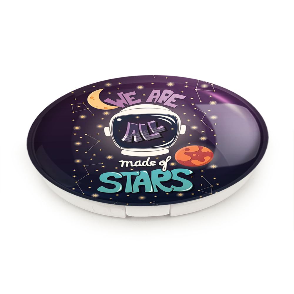 آینه های تاشو فضایی خندالو، از جنس پلاستیک فشرده ABS تولید شده و به رنگ سفید می باشد. یکی از آینه ها ابعاد واقعی را نشان داده و دیگری با قابلیت بزرگنمایی، جزئیات را بهتر نمایش می دهد.