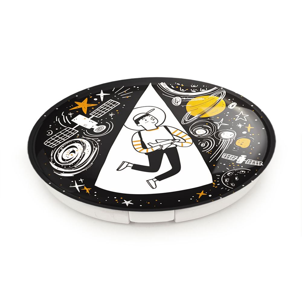 آینه های تاشو فضایی خندالو، از جنس پلاستیک فشرده ABS تولید شده و به رنگ سفید می باشد. یکی از آینه ها ابعاد واقعی را نشان داده و دیگری با قابلیت بزرگنمایی، جزئیات را بهتر نمایش می دهد.