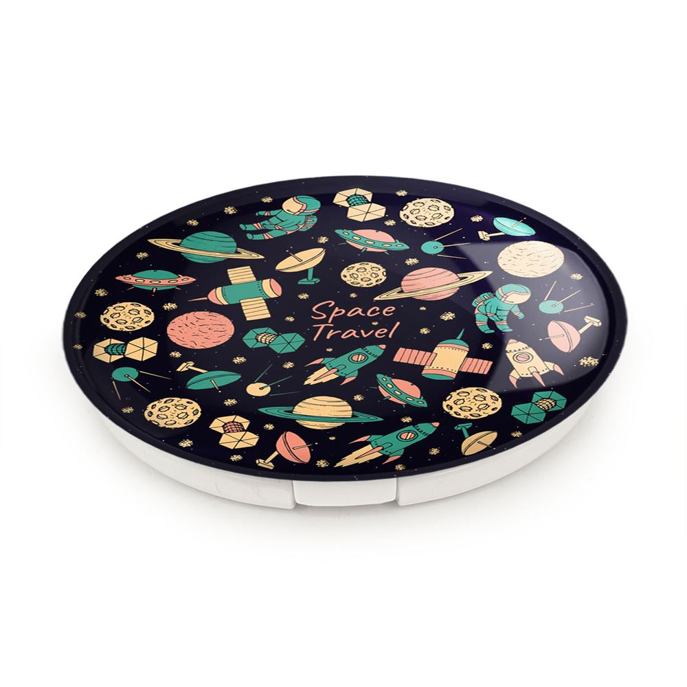 آینه های تاشو فضایی خندالو، از جنس پلاستیک فشرده ABS تولید شده و به رنگ سفید می باشد. یکی از آینه ها ابعاد واقعی را نشان داده و دیگری با قابلیت بزرگنمایی، جزئیات را بهتر نمایش می دهد.
