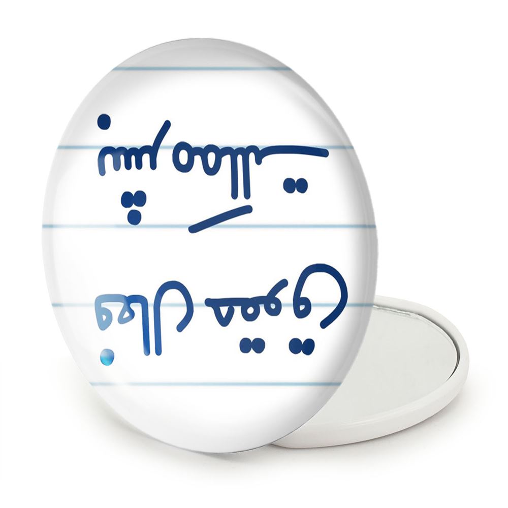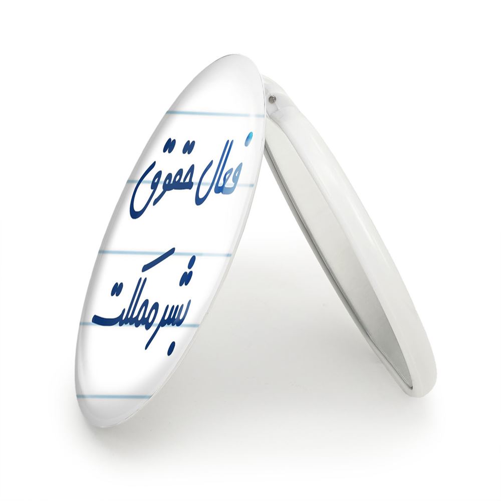 آینه های تاشو فعال حقوق بشر مملکت خندالو، از جنس پلاستیک فشرده ABS تولید شده و به رنگ سفید می باشد. یکی از آینه ها ابعاد واقعی را نشان داده و دیگری با قابلیت بزرگنمایی، جزئیات را بهتر نمایش می دهد. ابعاد هر یک از آینه ها، دایره ای به قطر 7.5 سانت می باشد که نه خیلی بزرگ و غیر قابل استفاده در کیف آرایشی ست و نه خیلی کوچک که تصویر خاصی در آن مشاهده نشود. آینه تاشو فعال حقوق بشر مملکت سایزی استاندارد و کارآمد دارد و در هر کیفی جا میگیرد. چاپ طرح بوسیله چاپگرهای دیجیتال شش رنگ با شفافیت و کیفیتی مثال زدنی بر روی یک وجه از بدنه ی آینه انجام گرفته و با روکش لمینت حرارتی پوشیده شده که در مقابل آسیب و خط و خش مقاوم بوده و کیفیت بالایی دارد. درب آینه بوسیله قفل بدنه ی آن، باز نمی ماند و کاملا بسته می شود و مناسب قرار گیری در کیف لوازم آرایش و کیف های کوچک دستی نیز هست. آینه های تاشو فعال حقوق بشر مملکت خندالو با تنوع طرحی بسیار بالا، سلیقه هر نوع مخاطبی را تامین میکند.