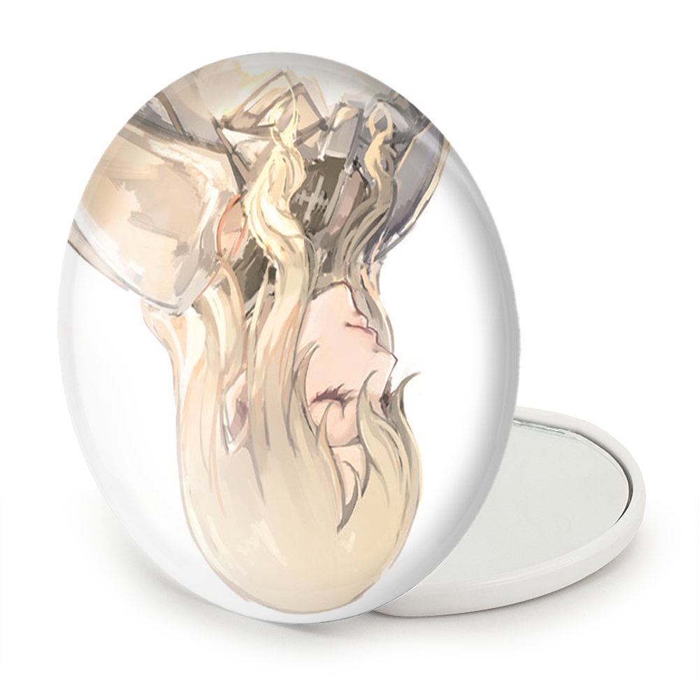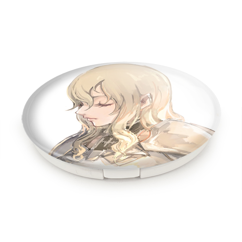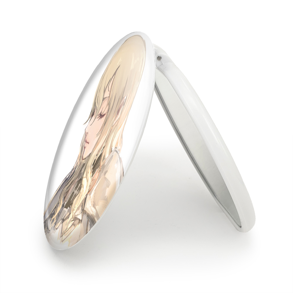 آینه های تاشو فلورا انیمه کلیمور خندالو، از جنس پلاستیک فشرده ABS تولید شده و به رنگ سفید می باشد. یکی از آینه ها ابعاد واقعی را نشان داده و دیگری با قابلیت بزرگنمایی، جزئیات را بهتر نمایش می دهد. ابعاد هر یک از آینه ها، دایره ای به قطر 7.5 سانت می باشد که نه خیلی بزرگ و غیر قابل استفاده در کیف آرایشی ست و نه خیلی کوچک که تصویر خاصی در آن مشاهده نشود. آینه تاشو فلورا انیمه کلیمور سایزی استاندارد و کارآمد دارد و در هر کیفی جا میگیرد. چاپ طرح بوسیله چاپگرهای دیجیتال شش رنگ با شفافیت و کیفیتی مثال زدنی بر روی یک وجه از بدنه ی آینه انجام گرفته و با روکش لمینت حرارتی پوشیده شده که در مقابل آسیب و خط و خش مقاوم بوده و کیفیت بالایی دارد. درب آینه بوسیله قفل بدنه ی آن، باز نمی ماند و کاملا بسته می شود و مناسب قرار گیری در کیف لوازم آرایش و کیف های کوچک دستی نیز هست. آینه های تاشو فلورا انیمه کلیمور خندالو با تنوع طرحی بسیار بالا، سلیقه هر نوع مخاطبی را تامین میکند.