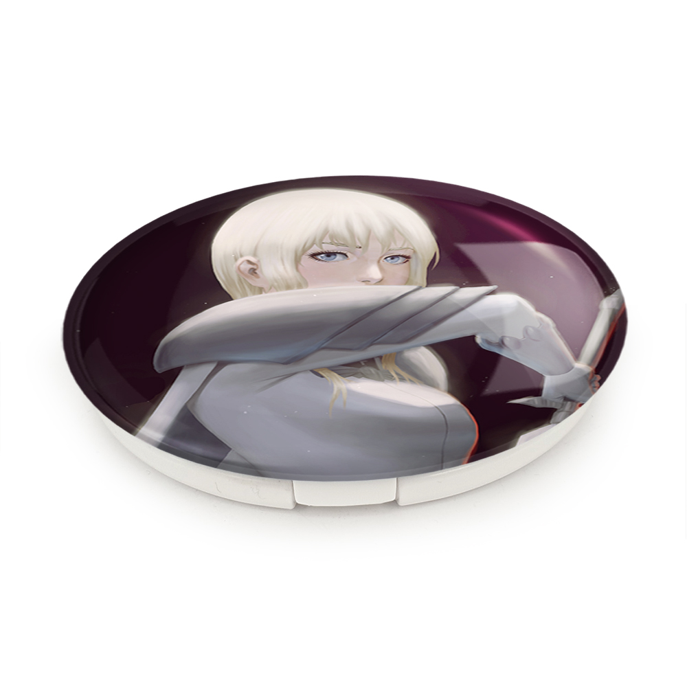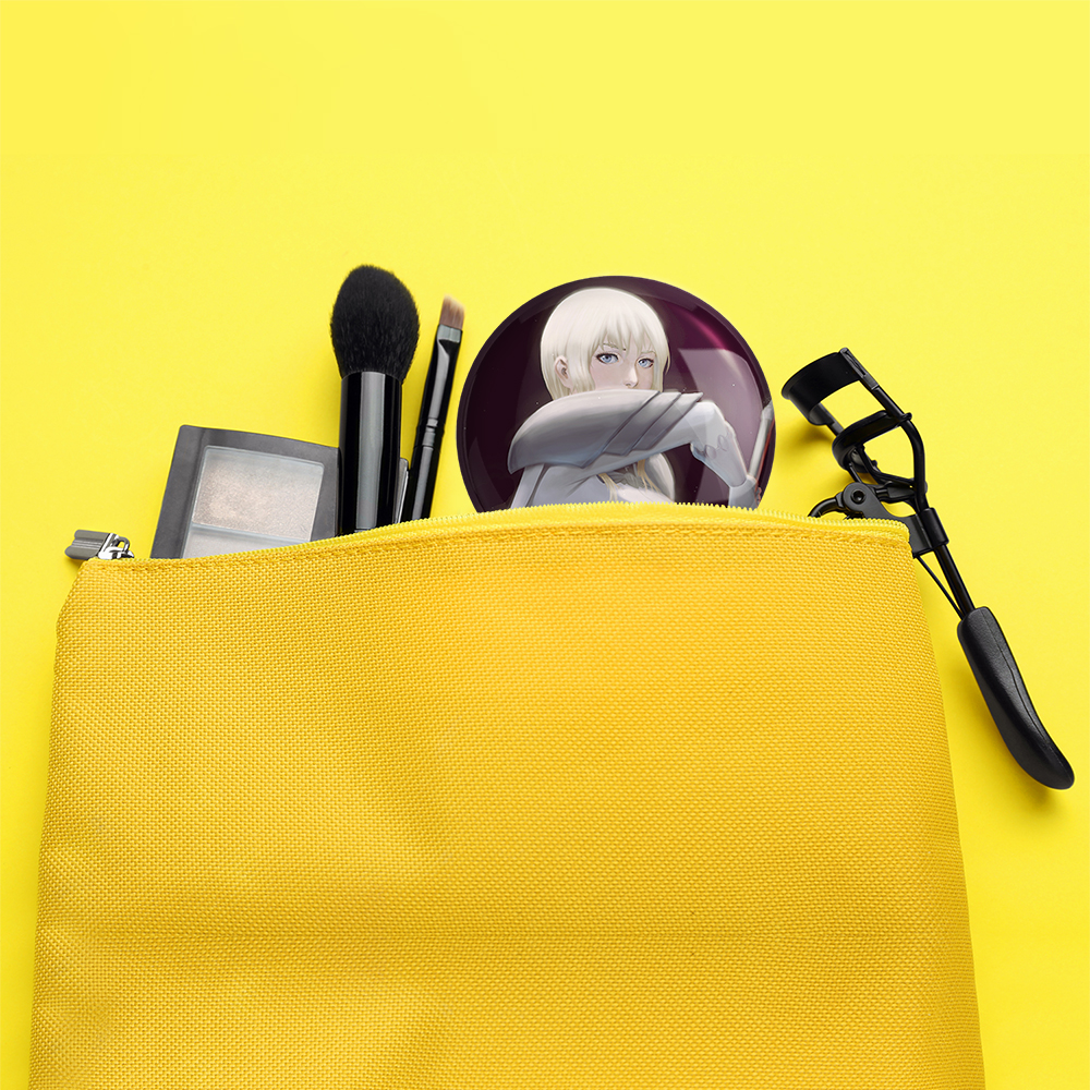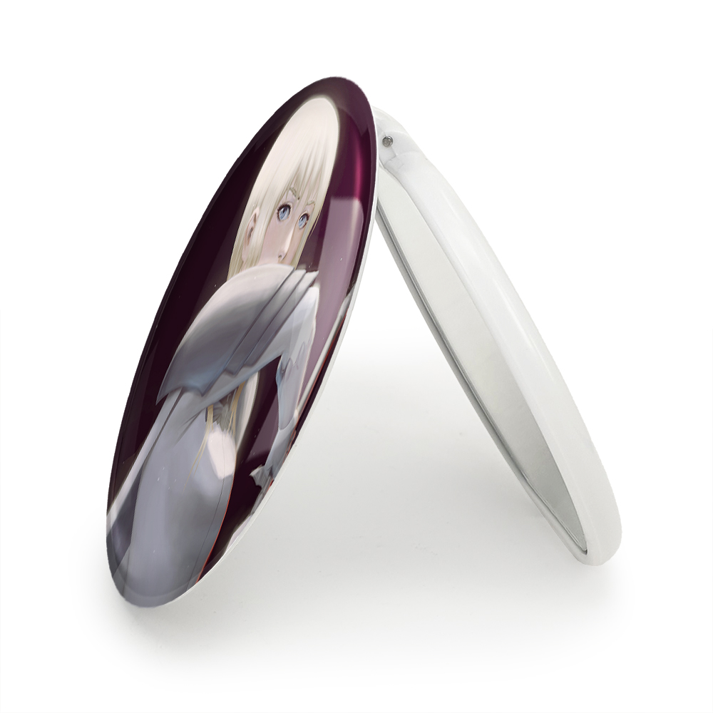 آینه های تاشو فلورا انیمه کلیمور خندالو، از جنس پلاستیک فشرده ABS تولید شده و به رنگ سفید می باشد. یکی از آینه ها ابعاد واقعی را نشان داده و دیگری با قابلیت بزرگنمایی، جزئیات را بهتر نمایش می دهد. ابعاد هر یک از آینه ها، دایره ای به قطر 7.5 سانت می باشد که نه خیلی بزرگ و غیر قابل استفاده در کیف آرایشی ست و نه خیلی کوچک که تصویر خاصی در آن مشاهده نشود. آینه تاشو فلورا انیمه کلیمور سایزی استاندارد و کارآمد دارد و در هر کیفی جا میگیرد. چاپ طرح بوسیله چاپگرهای دیجیتال شش رنگ با شفافیت و کیفیتی مثال زدنی بر روی یک وجه از بدنه ی آینه انجام گرفته و با روکش لمینت حرارتی پوشیده شده که در مقابل آسیب و خط و خش مقاوم بوده و کیفیت بالایی دارد. درب آینه بوسیله قفل بدنه ی آن، باز نمی ماند و کاملا بسته می شود و مناسب قرار گیری در کیف لوازم آرایش و کیف های کوچک دستی نیز هست. آینه های تاشو فلورا انیمه کلیمور خندالو با تنوع طرحی بسیار بالا، سلیقه هر نوع مخاطبی را تامین میکند.