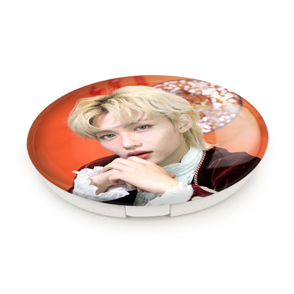 آینه های تاشو فلیکس گروه استری کیدز Stray Kids خندالو، از جنس پلاستیک فشرده ABS تولید شده و به رنگ سفید می باشد. یکی از آینه ها ابعاد واقعی را نشان داده و دیگری با قابلیت بزرگنمایی، جزئیات را بهتر نمایش می دهد. ابعاد هر یک از آینه ها، دایره ای به قطر 7.5 سانت می باشد که نه خیلی بزرگ و غیر قابل استفاده در کیف آرایشی ست و نه خیلی کوچک که تصویر خاصی در آن مشاهده نشود. آینه تاشو فلیکس گروه استری کیدز Stray Kids سایزی استاندارد و کارآمد دارد و در هر کیفی جا میگیرد. چاپ طرح بوسیله چاپگرهای دیجیتال شش رنگ با شفافیت و کیفیتی مثال زدنی بر روی یک وجه از بدنه ی آینه انجام گرفته و با روکش لمینت حرارتی پوشیده شده که در مقابل آسیب و خط و خش مقاوم بوده و کیفیت بالایی دارد. درب آینه بوسیله قفل بدنه ی آن، باز نمی ماند و کاملا بسته می شود و مناسب قرار گیری در کیف لوازم آرایش و کیف های کوچک دستی نیز هست. آینه های تاشو فلیکس گروه استری کیدز Stray Kids خندالو با تنوع طرحی بسیار بالا، سلیقه هر نوع مخاطبی را تامین میکند.