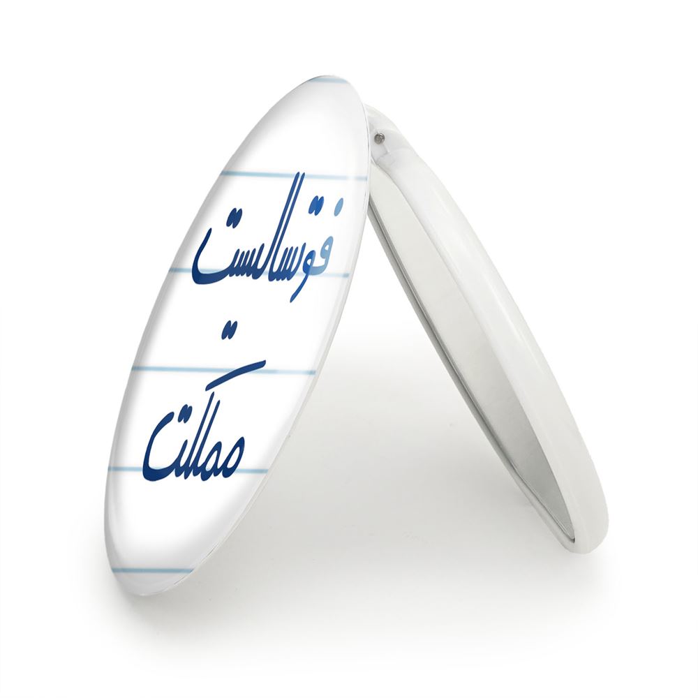 آینه های تاشو فوتسالیست مملکت خندالو، از جنس پلاستیک فشرده ABS تولید شده و به رنگ سفید می باشد. یکی از آینه ها ابعاد واقعی را نشان داده و دیگری با قابلیت بزرگنمایی، جزئیات را بهتر نمایش می دهد. ابعاد هر یک از آینه ها، دایره ای به قطر 7.5 سانت می باشد که نه خیلی بزرگ و غیر قابل استفاده در کیف آرایشی ست و نه خیلی کوچک که تصویر خاصی در آن مشاهده نشود. آینه تاشو فوتسالیست مملکت سایزی استاندارد و کارآمد دارد و در هر کیفی جا میگیرد. چاپ طرح بوسیله چاپگرهای دیجیتال شش رنگ با شفافیت و کیفیتی مثال زدنی بر روی یک وجه از بدنه ی آینه انجام گرفته و با روکش لمینت حرارتی پوشیده شده که در مقابل آسیب و خط و خش مقاوم بوده و کیفیت بالایی دارد. درب آینه بوسیله قفل بدنه ی آن، باز نمی ماند و کاملا بسته می شود و مناسب قرار گیری در کیف لوازم آرایش و کیف های کوچک دستی نیز هست. آینه های تاشو فوتسالیست مملکت خندالو با تنوع طرحی بسیار بالا، سلیقه هر نوع مخاطبی را تامین میکند.