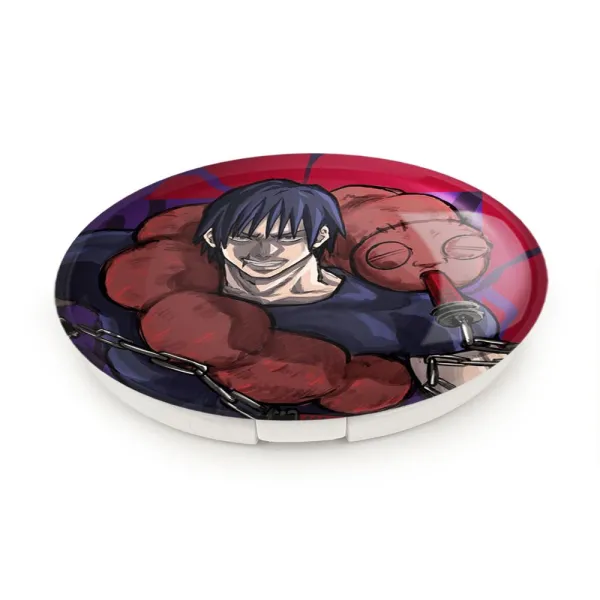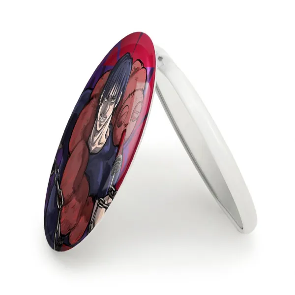 آینه های تاشو فوشیگورو انیمه جوجوتسو کایزن Jujutsu Kaisen خندالو، از جنس پلاستیک فشرده ABS تولید شده و به رنگ سفید می باشد. یکی از آینه ها ابعاد واقعی را نشان داده و دیگری با قابلیت بزرگنمایی، جزئیات را بهتر نمایش می دهد. ابعاد هر یک از آینه ها، دایره ای به قطر 7.5 سانت می باشد که نه خیلی بزرگ و غیر قابل استفاده در کیف آرایشی ست و نه خیلی کوچک که تصویر خاصی در آن مشاهده نشود. آینه تاشو فوشیگورو انیمه جوجوتسو کایزن Jujutsu Kaisen سایزی استاندارد و کارآمد دارد و در هر کیفی جا میگیرد. چاپ طرح بوسیله چاپگرهای دیجیتال شش رنگ با شفافیت و کیفیتی مثال زدنی بر روی یک وجه از بدنه ی آینه انجام گرفته و با روکش لمینت حرارتی پوشیده شده که در مقابل آسیب و خط و خش مقاوم بوده و کیفیت بالایی دارد. درب آینه بوسیله قفل بدنه ی آن، باز نمی ماند و کاملا بسته می شود و مناسب قرار گیری در کیف لوازم آرایش و کیف های کوچک دستی نیز هست. آینه های تاشو فوشیگورو انیمه جوجوتسو کایزن Jujutsu Kaisen خندالو با تنوع طرحی بسیار بالا، سلیقه هر نوع مخاطبی را تامین میکند.