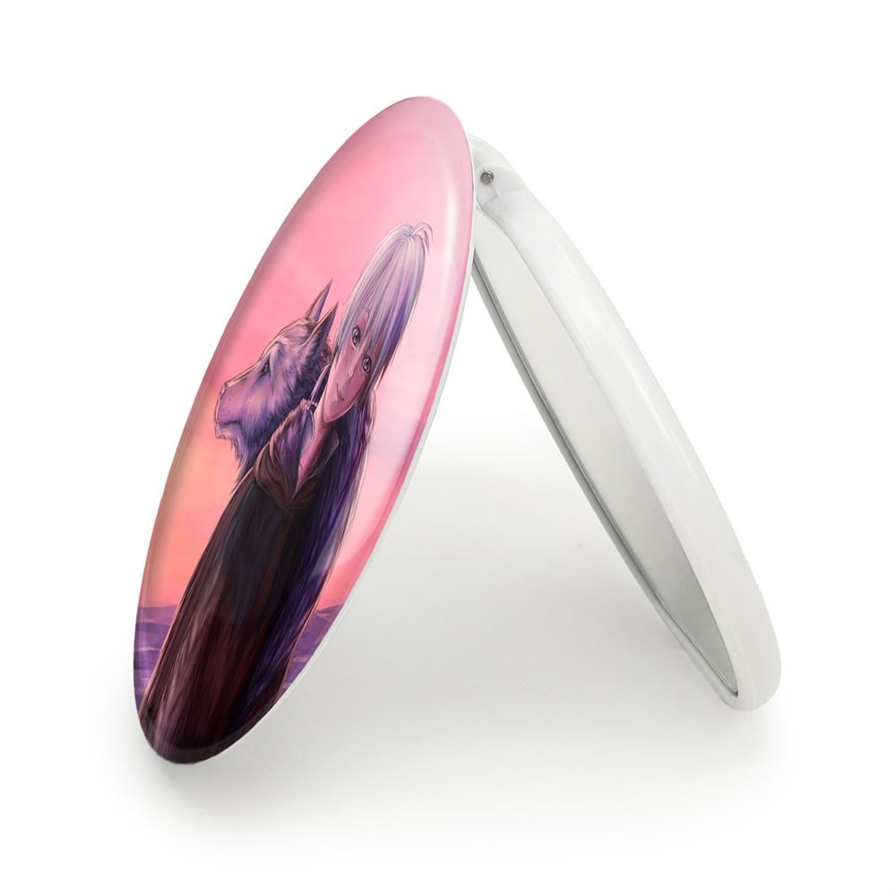 آینه های تاشو فوشی انیمه به تو ای ابدی خندالو، از جنس پلاستیک فشرده ABS تولید شده و به رنگ سفید می باشد. یکی از آینه ها ابعاد واقعی را نشان داده و دیگری با قابلیت بزرگنمایی، جزئیات را بهتر نمایش می دهد. ابعاد هر یک از آینه ها، دایره ای به قطر 7.5 سانت می باشد که نه خیلی بزرگ و غیر قابل استفاده در کیف آرایشی ست و نه خیلی کوچک که تصویر خاصی در آن مشاهده نشود. آینه تاشو فوشی انیمه به تو ای ابدی سایزی استاندارد و کارآمد دارد و در هر کیفی جا میگیرد. چاپ طرح بوسیله چاپگرهای دیجیتال شش رنگ با شفافیت و کیفیتی مثال زدنی بر روی یک وجه از بدنه ی آینه انجام گرفته و با روکش لمینت حرارتی پوشیده شده که در مقابل آسیب و خط و خش مقاوم بوده و کیفیت بالایی دارد. درب آینه بوسیله قفل بدنه ی آن، باز نمی ماند و کاملا بسته می شود و مناسب قرار گیری در کیف لوازم آرایش و کیف های کوچک دستی نیز هست. آینه های تاشو فوشی انیمه به تو ای ابدی خندالو با تنوع طرحی بسیار بالا، سلیقه هر نوع مخاطبی را تامین میکند.