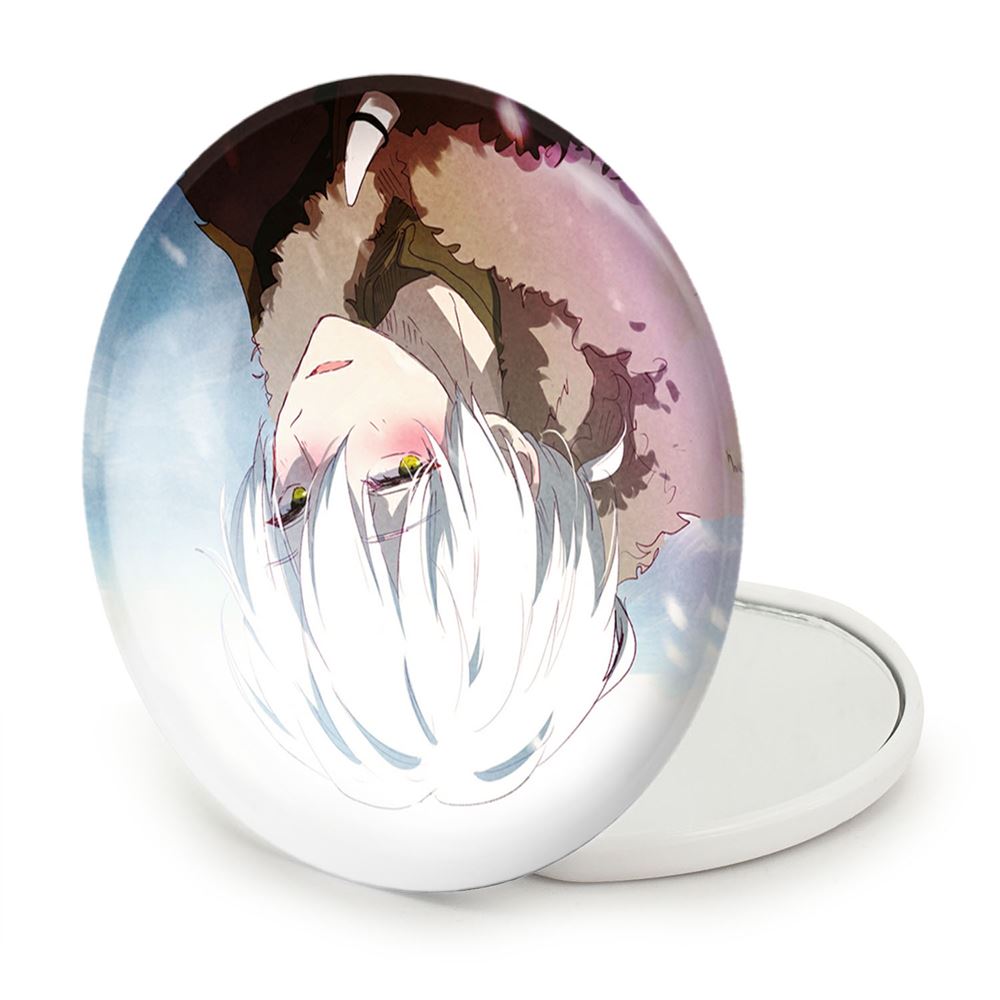 آینه های تاشو فوشی انیمه به تو ای ابدی خندالو، از جنس پلاستیک فشرده ABS تولید شده و به رنگ سفید می باشد. یکی از آینه ها ابعاد واقعی را نشان داده و دیگری با قابلیت بزرگنمایی، جزئیات را بهتر نمایش می دهد. ابعاد هر یک از آینه ها، دایره ای به قطر 7.5 سانت می باشد که نه خیلی بزرگ و غیر قابل استفاده در کیف آرایشی ست و نه خیلی کوچک که تصویر خاصی در آن مشاهده نشود. آینه تاشو فوشی انیمه به تو ای ابدی سایزی استاندارد و کارآمد دارد و در هر کیفی جا میگیرد. چاپ طرح بوسیله چاپگرهای دیجیتال شش رنگ با شفافیت و کیفیتی مثال زدنی بر روی یک وجه از بدنه ی آینه انجام گرفته و با روکش لمینت حرارتی پوشیده شده که در مقابل آسیب و خط و خش مقاوم بوده و کیفیت بالایی دارد. درب آینه بوسیله قفل بدنه ی آن، باز نمی ماند و کاملا بسته می شود و مناسب قرار گیری در کیف لوازم آرایش و کیف های کوچک دستی نیز هست. آینه های تاشو فوشی انیمه به تو ای ابدی خندالو با تنوع طرحی بسیار بالا، سلیقه هر نوع مخاطبی را تامین میکند.
