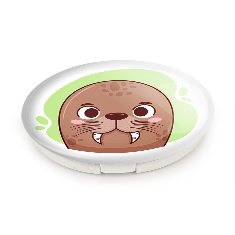 آینه های تاشو فوک دریایی حیوانات بامزه خندالو، از جنس پلاستیک فشرده ABS تولید شده و به رنگ سفید می باشد. یکی از آینه ها ابعاد واقعی را نشان داده و دیگری با قابلیت بزرگنمایی، جزئیات را بهتر نمایش می دهد. ابعاد هر یک از آینه ها، دایره ای به قطر 7.5 سانت می باشد که نه خیلی بزرگ و غیر قابل استفاده در کیف آرایشی ست و نه خیلی کوچک که تصویر خاصی در آن مشاهده نشود. آینه تاشو فوک دریایی حیوانات بامزه سایزی استاندارد و کارآمد دارد و در هر کیفی جا میگیرد. چاپ طرح بوسیله چاپگرهای دیجیتال شش رنگ با شفافیت و کیفیتی مثال زدنی بر روی یک وجه از بدنه ی آینه انجام گرفته و با روکش لمینت حرارتی پوشیده شده که در مقابل آسیب و خط و خش مقاوم بوده و کیفیت بالایی دارد. درب آینه بوسیله قفل بدنه ی آن، باز نمی ماند و کاملا بسته می شود و مناسب قرار گیری در کیف لوازم آرایش و کیف های کوچک دستی نیز هست. آینه های تاشو فوک دریایی حیوانات بامزه خندالو با تنوع طرحی بسیار بالا، سلیقه هر نوع مخاطبی را تامین میکند.