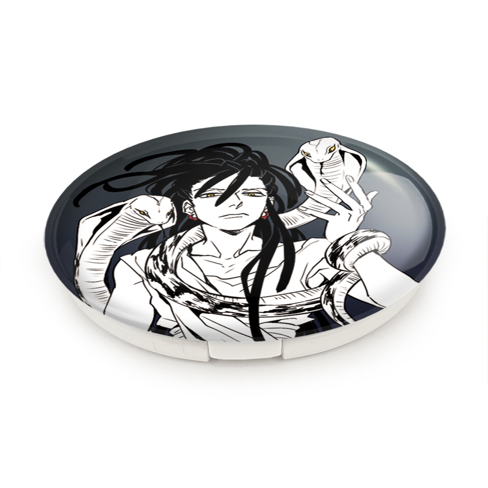 آینه های تاشو قصیم انیمه ماگی هزارتوی سحر و جادو خندالو، از جنس پلاستیک فشرده ABS تولید شده و به رنگ سفید می باشد. یکی از آینه ها ابعاد واقعی را نشان داده و دیگری با قابلیت بزرگنمایی، جزئیات را بهتر نمایش می دهد. ابعاد هر یک از آینه ها، دایره ای به قطر 7.5 سانت می باشد که نه خیلی بزرگ و غیر قابل استفاده در کیف آرایشی ست و نه خیلی کوچک که تصویر خاصی در آن مشاهده نشود. آینه تاشو قصیم انیمه ماگی هزارتوی سحر و جادو سایزی استاندارد و کارآمد دارد و در هر کیفی جا میگیرد. چاپ طرح بوسیله چاپگرهای دیجیتال شش رنگ با شفافیت و کیفیتی مثال زدنی بر روی یک وجه از بدنه ی آینه انجام گرفته و با روکش لمینت حرارتی پوشیده شده که در مقابل آسیب و خط و خش مقاوم بوده و کیفیت بالایی دارد. درب آینه بوسیله قفل بدنه ی آن، باز نمی ماند و کاملا بسته می شود و مناسب قرار گیری در کیف لوازم آرایش و کیف های کوچک دستی نیز هست. آینه های تاشو قصیم انیمه ماگی هزارتوی سحر و جادو خندالو با تنوع طرحی بسیار بالا، سلیقه هر نوع مخاطبی را تامین میکند.