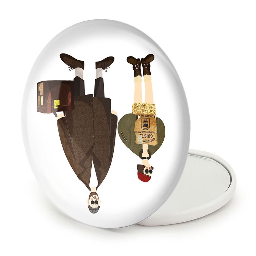آینه های تاشو لئون و ماتیلدا خندالو، از جنس پلاستیک فشرده ABS تولید شده و به رنگ سفید می باشد. یکی از آینه ها ابعاد واقعی را نشان داده و دیگری با قابلیت بزرگنمایی، جزئیات را بهتر نمایش می دهد. ابعاد هر یک از آینه ها، دایره ای به قطر 7.5 سانت می باشد که نه خیلی بزرگ و غیر قابل استفاده در کیف آرایشی ست و نه خیلی کوچک که تصویر خاصی در آن مشاهده نشود. آینه تاشو لئون و ماتیلدا سایزی استاندارد و کارآمد دارد و در هر کیفی جا میگیرد. چاپ طرح بوسیله چاپگرهای دیجیتال شش رنگ با شفافیت و کیفیتی مثال زدنی بر روی یک وجه از بدنه ی آینه انجام گرفته و با روکش لمینت حرارتی پوشیده شده که در مقابل آسیب و خط و خش مقاوم بوده و کیفیت بالایی دارد. درب آینه بوسیله قفل بدنه ی آن، باز نمی ماند و کاملا بسته می شود و مناسب قرار گیری در کیف لوازم آرایش و کیف های کوچک دستی نیز هست. آینه های تاشو لئون و ماتیلدا خندالو با تنوع طرحی بسیار بالا، سلیقه هر نوع مخاطبی را تامین میکند.
