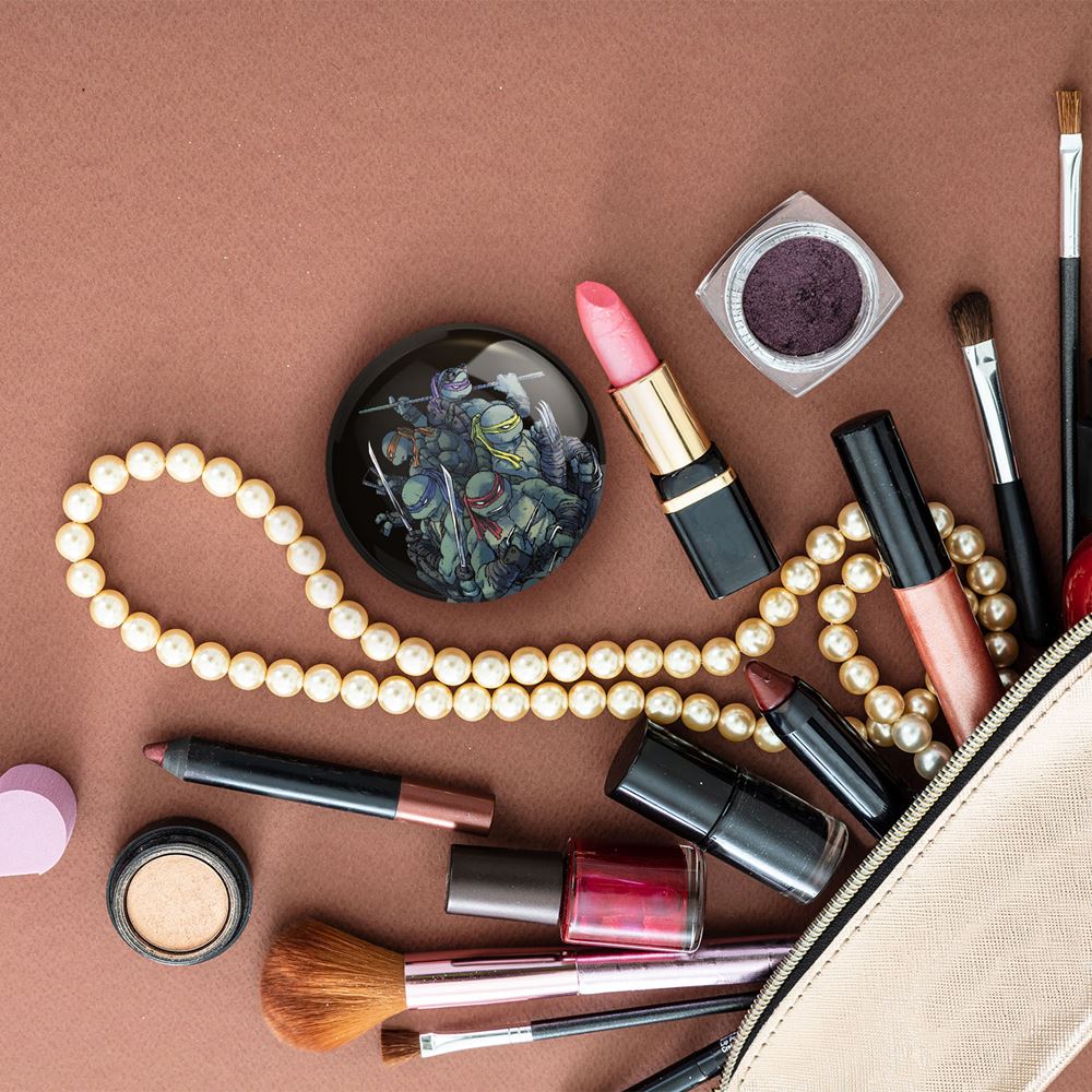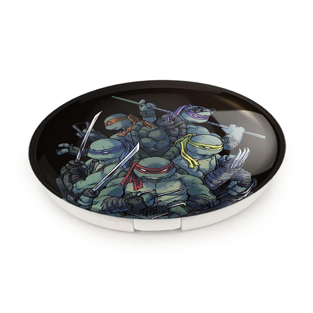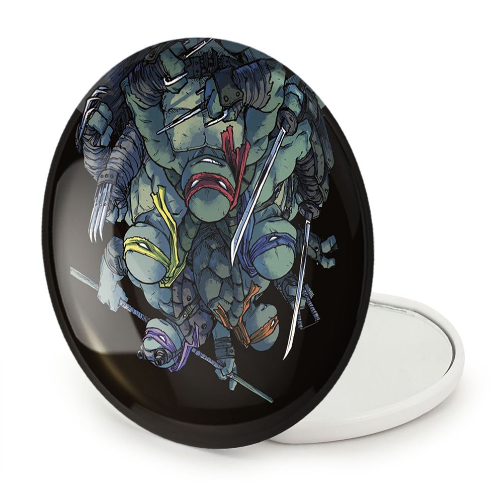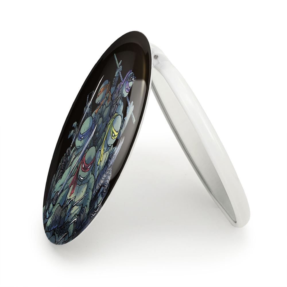 آینه های تاشو لاکپشت های نینجا خندالو، از جنس پلاستیک فشرده ABS تولید شده و به رنگ سفید می باشد. یکی از آینه ها ابعاد واقعی را نشان داده و دیگری با قابلیت بزرگنمایی، جزئیات را بهتر نمایش می دهد. ابعاد هر یک از آینه ها، دایره ای به قطر 7.5 سانت می باشد که نه خیلی بزرگ و غیر قابل استفاده در کیف آرایشی ست و نه خیلی کوچک که تصویر خاصی در آن مشاهده نشود. آینه تاشو لاکپشت های نینجا سایزی استاندارد و کارآمد دارد و در هر کیفی جا میگیرد. چاپ طرح بوسیله چاپگرهای دیجیتال شش رنگ با شفافیت و کیفیتی مثال زدنی بر روی یک وجه از بدنه ی آینه انجام گرفته و با روکش لمینت حرارتی پوشیده شده که در مقابل آسیب و خط و خش مقاوم بوده و کیفیت بالایی دارد. درب آینه بوسیله قفل بدنه ی آن، باز نمی ماند و کاملا بسته می شود و مناسب قرار گیری در کیف لوازم آرایش و کیف های کوچک دستی نیز هست. آینه های تاشو لاکپشت های نینجا خندالو با تنوع طرحی بسیار بالا، سلیقه هر نوع مخاطبی را تامین میکند.