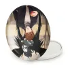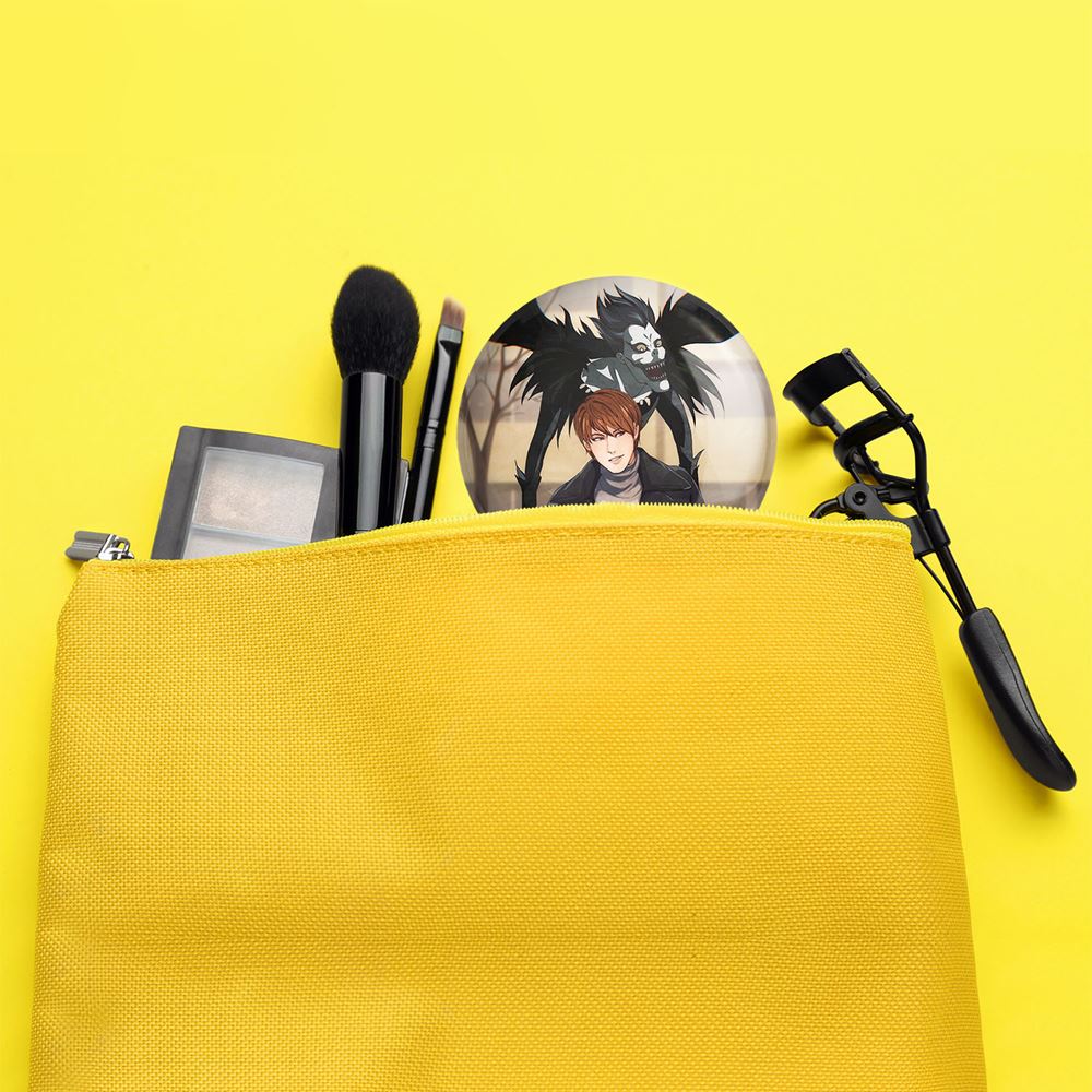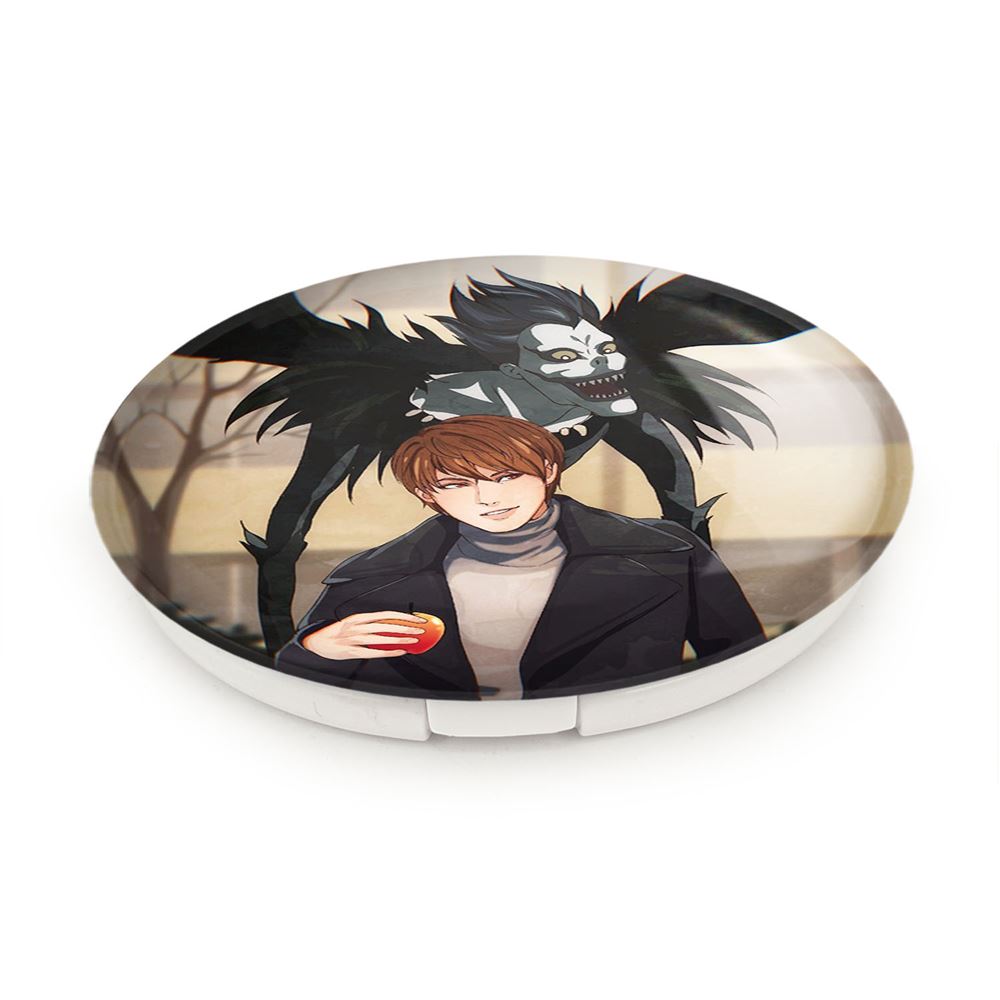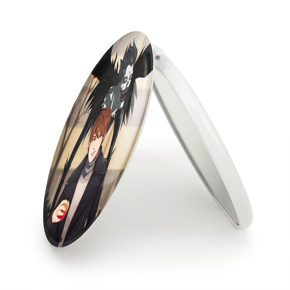 آینه های تاشو لایت و ریوک انیمه دفترچه مرگ Death Note خندالو، از جنس پلاستیک فشرده ABS تولید شده و به رنگ سفید می باشد. یکی از آینه ها ابعاد واقعی را نشان داده و دیگری با قابلیت بزرگنمایی، جزئیات را بهتر نمایش می دهد. ابعاد هر یک از آینه ها، دایره ای به قطر 7.5 سانت می باشد که نه خیلی بزرگ و غیر قابل استفاده در کیف آرایشی ست و نه خیلی کوچک که تصویر خاصی در آن مشاهده نشود. آینه تاشو لایت و ریوک انیمه دفترچه مرگ Death Note سایزی استاندارد و کارآمد دارد و در هر کیفی جا میگیرد. چاپ طرح بوسیله چاپگرهای دیجیتال شش رنگ با شفافیت و کیفیتی مثال زدنی بر روی یک وجه از بدنه ی آینه انجام گرفته و با روکش لمینت حرارتی پوشیده شده که در مقابل آسیب و خط و خش مقاوم بوده و کیفیت بالایی دارد. درب آینه بوسیله قفل بدنه ی آن، باز نمی ماند و کاملا بسته می شود و مناسب قرار گیری در کیف لوازم آرایش و کیف های کوچک دستی نیز هست. آینه های تاشو لایت و ریوک انیمه دفترچه مرگ Death Note خندالو با تنوع طرحی بسیار بالا، سلیقه هر نوع مخاطبی را تامین میکند.