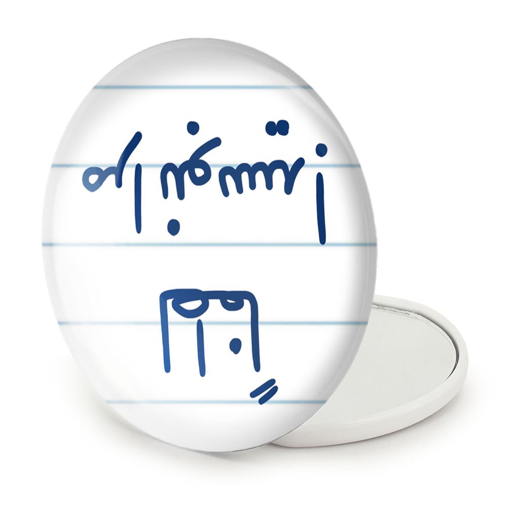 آینه های تاشو لطفا مرا نبوسید خندالو، از جنس پلاستیک فشرده ABS تولید شده و به رنگ سفید می باشد. یکی از آینه ها ابعاد واقعی را نشان داده و دیگری با قابلیت بزرگنمایی، جزئیات را بهتر نمایش می دهد. ابعاد هر یک از آینه ها، دایره ای به قطر 7.5 سانت می باشد که نه خیلی بزرگ و غیر قابل استفاده در کیف آرایشی ست و نه خیلی کوچک که تصویر خاصی در آن مشاهده نشود. آینه تاشو لطفا مرا نبوسید سایزی استاندارد و کارآمد دارد و در هر کیفی جا میگیرد. چاپ طرح بوسیله چاپگرهای دیجیتال شش رنگ با شفافیت و کیفیتی مثال زدنی بر روی یک وجه از بدنه ی آینه انجام گرفته و با روکش لمینت حرارتی پوشیده شده که در مقابل آسیب و خط و خش مقاوم بوده و کیفیت بالایی دارد. درب آینه بوسیله قفل بدنه ی آن، باز نمی ماند و کاملا بسته می شود و مناسب قرار گیری در کیف لوازم آرایش و کیف های کوچک دستی نیز هست. آینه های تاشو لطفا مرا نبوسید خندالو با تنوع طرحی بسیار بالا، سلیقه هر نوع مخاطبی را تامین میکند.