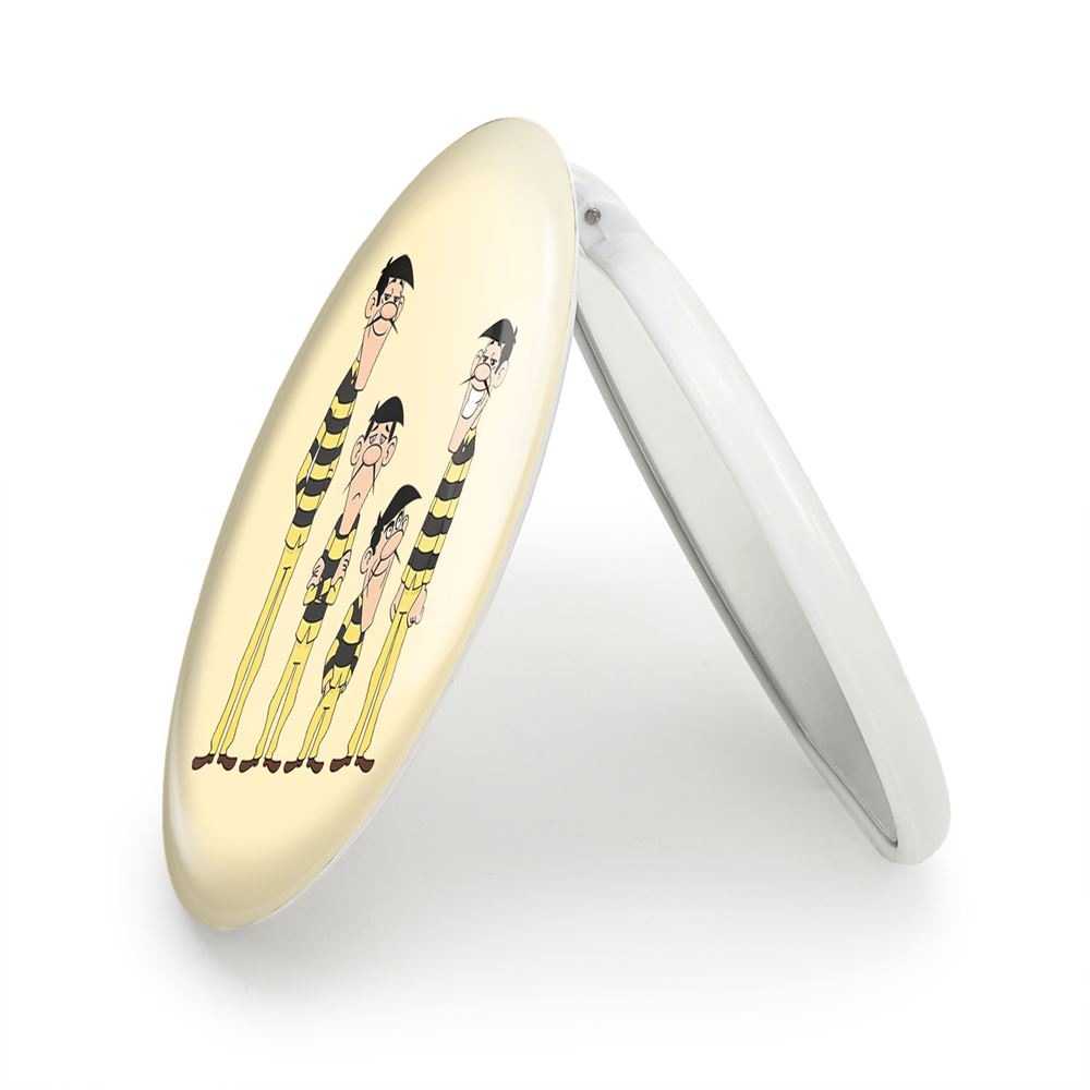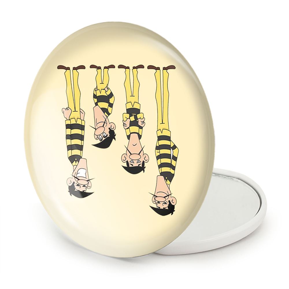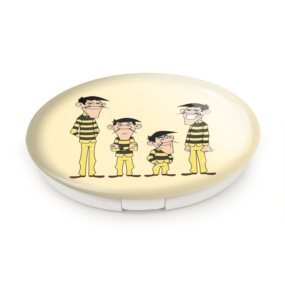 آینه های تاشو لوک خوش شانس خندالو، از جنس پلاستیک فشرده ABS تولید شده و به رنگ سفید می باشد. یکی از آینه ها ابعاد واقعی را نشان داده و دیگری با قابلیت بزرگنمایی، جزئیات را بهتر نمایش می دهد. ابعاد هر یک از آینه ها، دایره ای به قطر 7.5 سانت می باشد که نه خیلی بزرگ و غیر قابل استفاده در کیف آرایشی ست و نه خیلی کوچک که تصویر خاصی در آن مشاهده نشود. آینه تاشو لوک خوش شانس سایزی استاندارد و کارآمد دارد و در هر کیفی جا میگیرد. چاپ طرح بوسیله چاپگرهای دیجیتال شش رنگ با شفافیت و کیفیتی مثال زدنی بر روی یک وجه از بدنه ی آینه انجام گرفته و با روکش لمینت حرارتی پوشیده شده که در مقابل آسیب و خط و خش مقاوم بوده و کیفیت بالایی دارد. درب آینه بوسیله قفل بدنه ی آن، باز نمی ماند و کاملا بسته می شود و مناسب قرار گیری در کیف لوازم آرایش و کیف های کوچک دستی نیز هست. آینه های تاشو لوک خوش شانس خندالو با تنوع طرحی بسیار بالا، سلیقه هر نوع مخاطبی را تامین میکند.