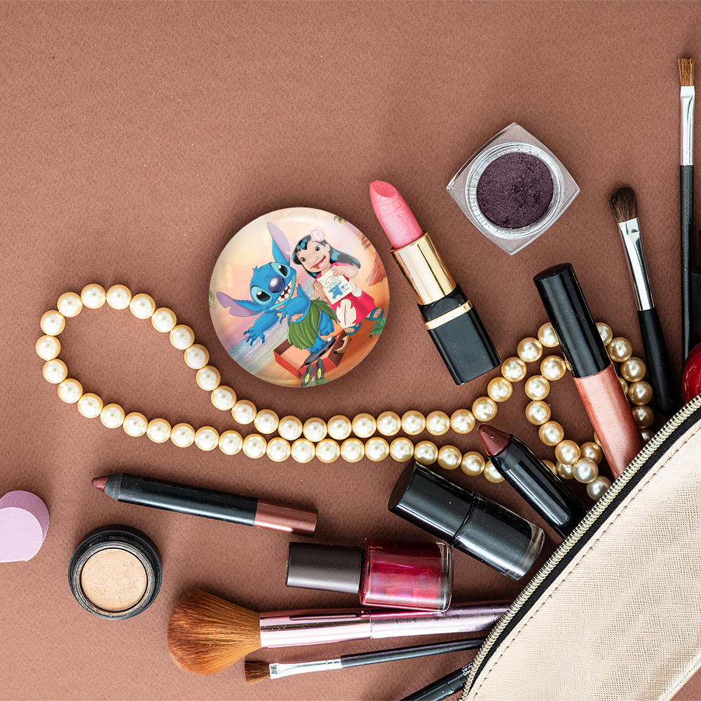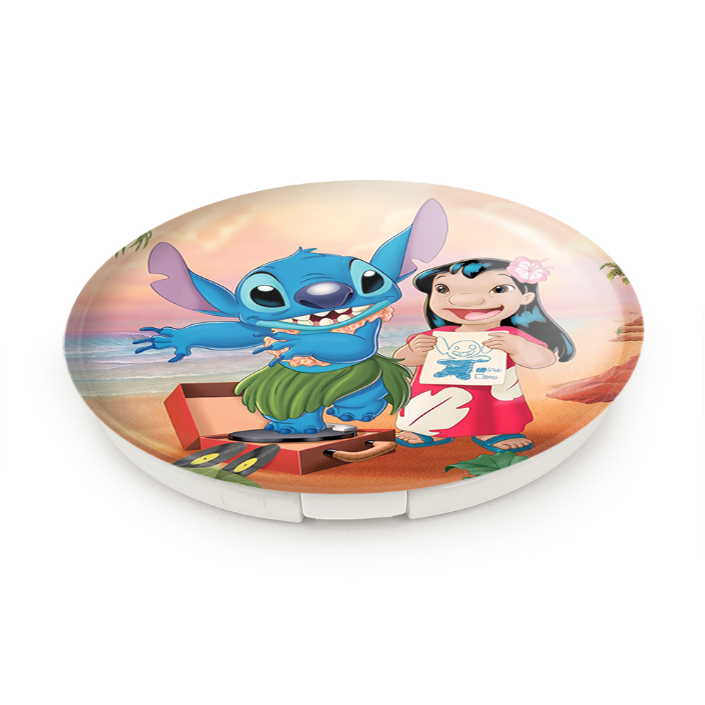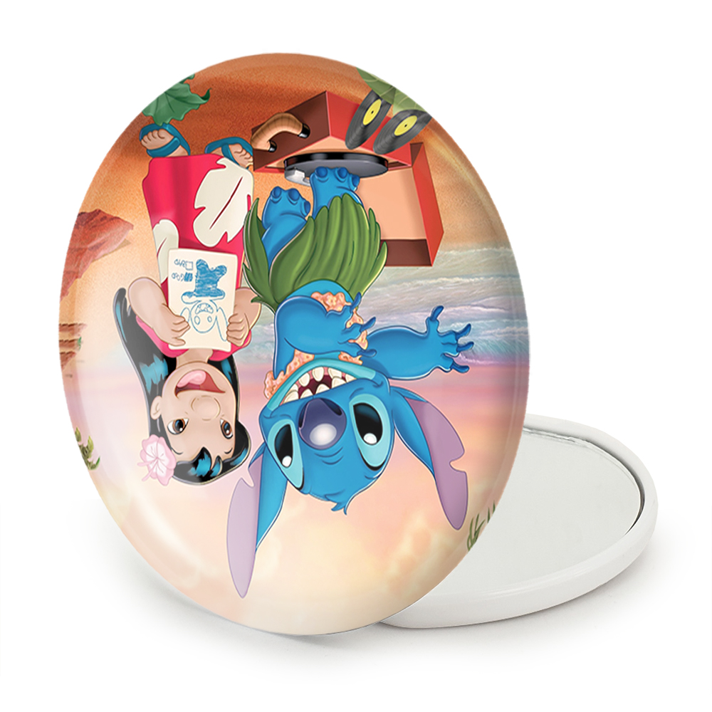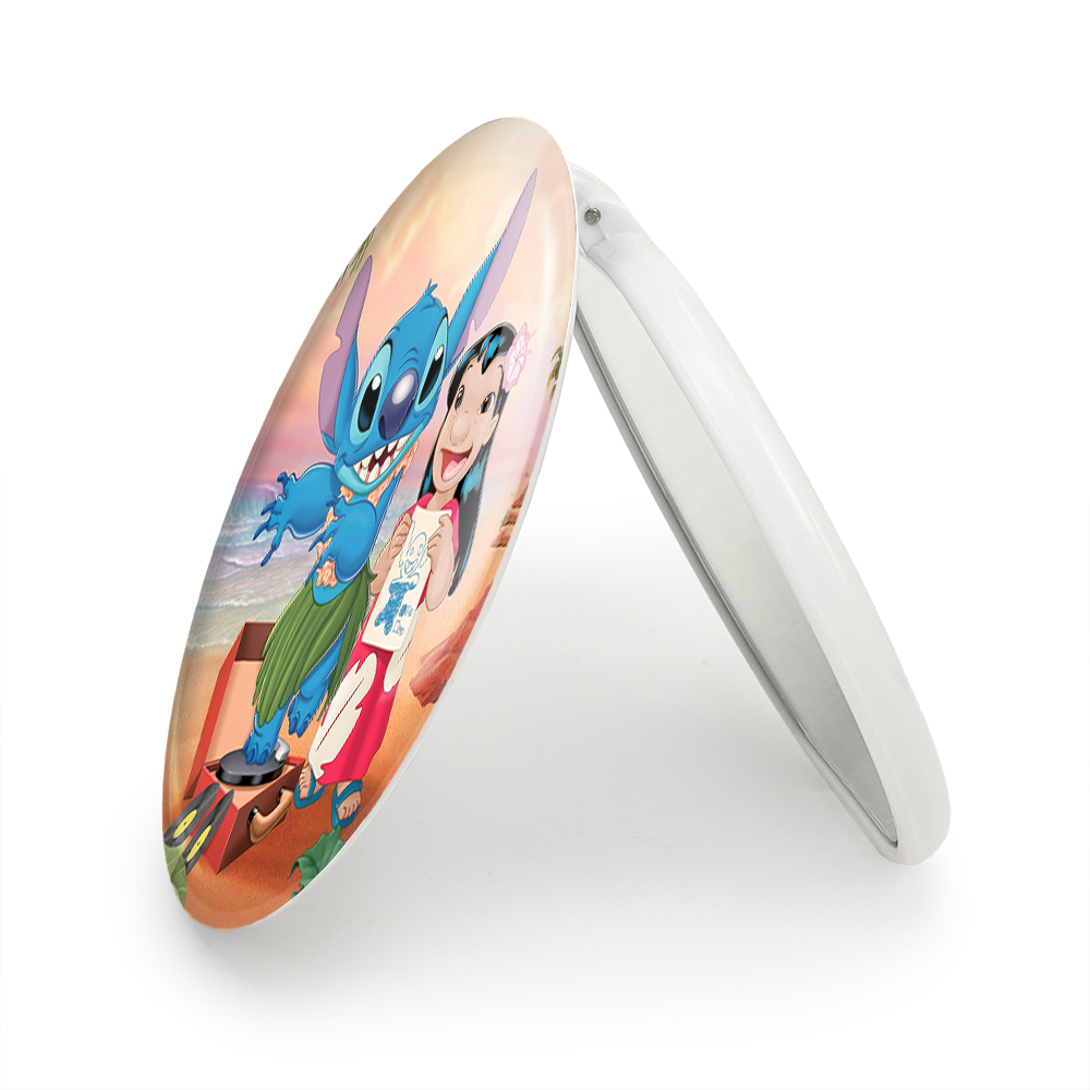 آینه های تاشو لیلو و استیچ خندالو، از جنس پلاستیک فشرده ABS تولید شده و به رنگ سفید می باشد. یکی از آینه ها ابعاد واقعی را نشان داده و دیگری با قابلیت بزرگنمایی، جزئیات را بهتر نمایش می دهد. ابعاد هر یک از آینه ها، دایره ای به قطر 7.5 سانت می باشد که نه خیلی بزرگ و غیر قابل استفاده در کیف آرایشی ست و نه خیلی کوچک که تصویر خاصی در آن مشاهده نشود. آینه تاشو لیلو و استیچ سایزی استاندارد و کارآمد دارد و در هر کیفی جا میگیرد. چاپ طرح بوسیله چاپگرهای دیجیتال شش رنگ با شفافیت و کیفیتی مثال زدنی بر روی یک وجه از بدنه ی آینه انجام گرفته و با روکش لمینت حرارتی پوشیده شده که در مقابل آسیب و خط و خش مقاوم بوده و کیفیت بالایی دارد. درب آینه بوسیله قفل بدنه ی آن، باز نمی ماند و کاملا بسته می شود و مناسب قرار گیری در کیف لوازم آرایش و کیف های کوچک دستی نیز هست. آینه های تاشو لیلو و استیچ خندالو با تنوع طرحی بسیار بالا، سلیقه هر نوع مخاطبی را تامین میکند.