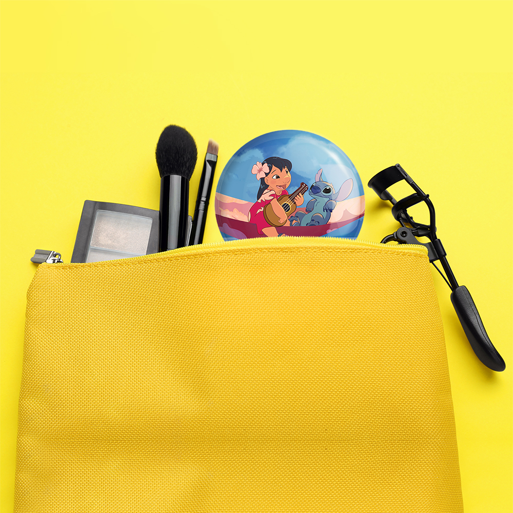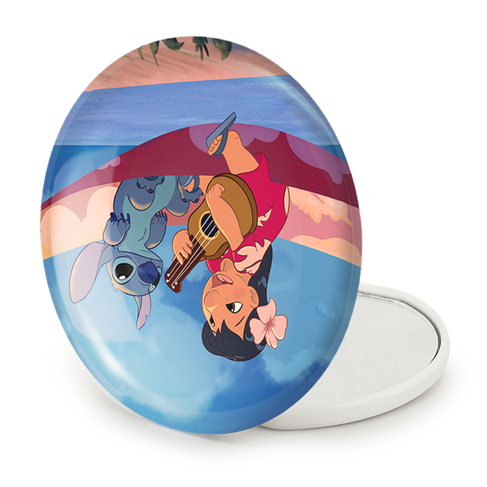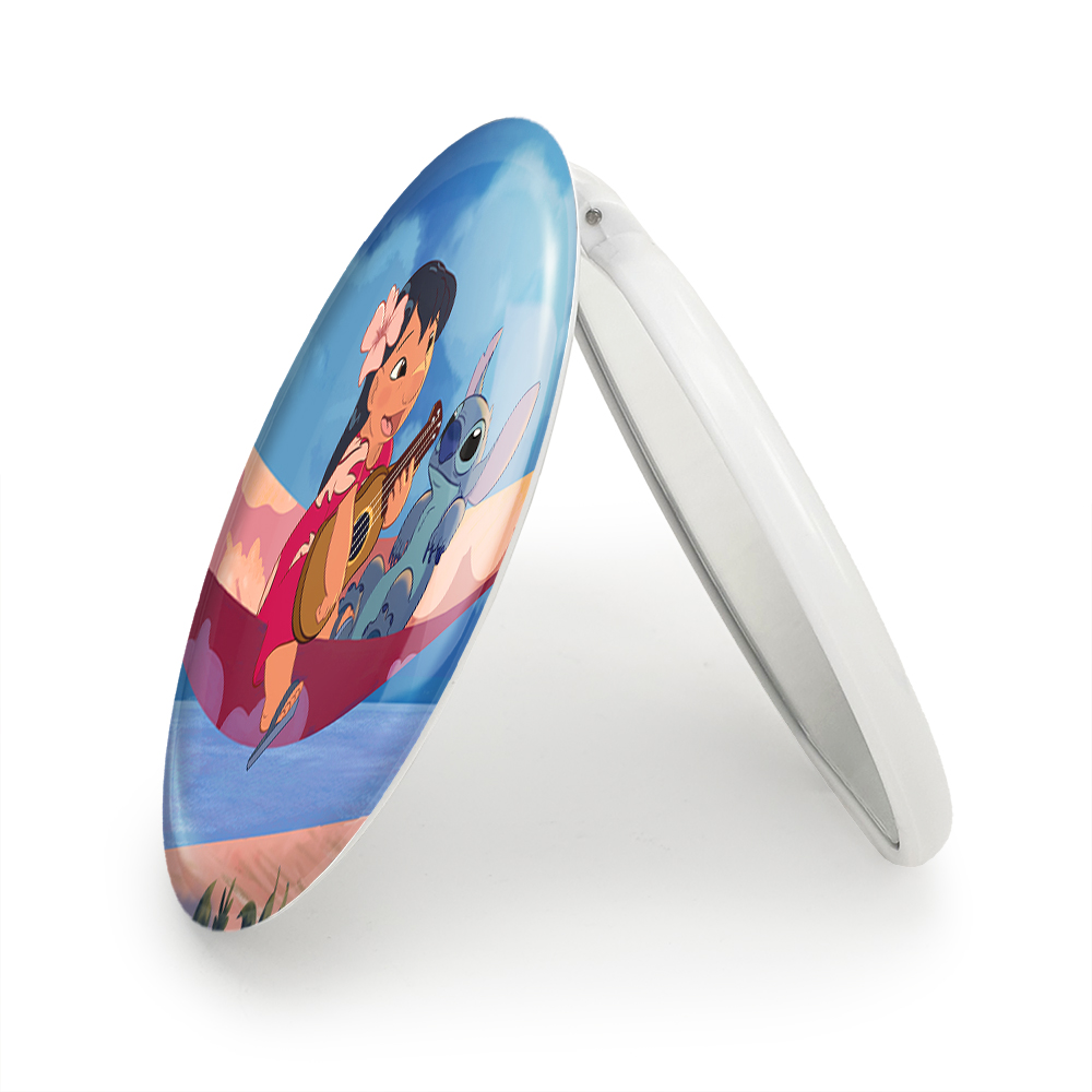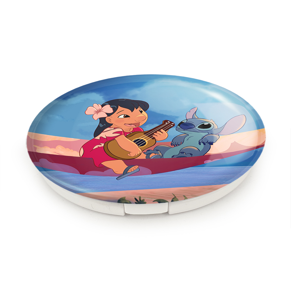 آینه های تاشو لیلو و استیچ خندالو، از جنس پلاستیک فشرده ABS تولید شده و به رنگ سفید می باشد. یکی از آینه ها ابعاد واقعی را نشان داده و دیگری با قابلیت بزرگنمایی، جزئیات را بهتر نمایش می دهد. ابعاد هر یک از آینه ها، دایره ای به قطر 7.5 سانت می باشد که نه خیلی بزرگ و غیر قابل استفاده در کیف آرایشی ست و نه خیلی کوچک که تصویر خاصی در آن مشاهده نشود. آینه تاشو لیلو و استیچ سایزی استاندارد و کارآمد دارد و در هر کیفی جا میگیرد. چاپ طرح بوسیله چاپگرهای دیجیتال شش رنگ با شفافیت و کیفیتی مثال زدنی بر روی یک وجه از بدنه ی آینه انجام گرفته و با روکش لمینت حرارتی پوشیده شده که در مقابل آسیب و خط و خش مقاوم بوده و کیفیت بالایی دارد. درب آینه بوسیله قفل بدنه ی آن، باز نمی ماند و کاملا بسته می شود و مناسب قرار گیری در کیف لوازم آرایش و کیف های کوچک دستی نیز هست. آینه های تاشو لیلو و استیچ خندالو با تنوع طرحی بسیار بالا، سلیقه هر نوع مخاطبی را تامین میکند.