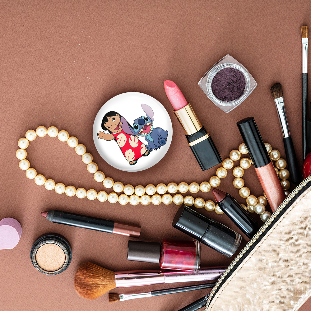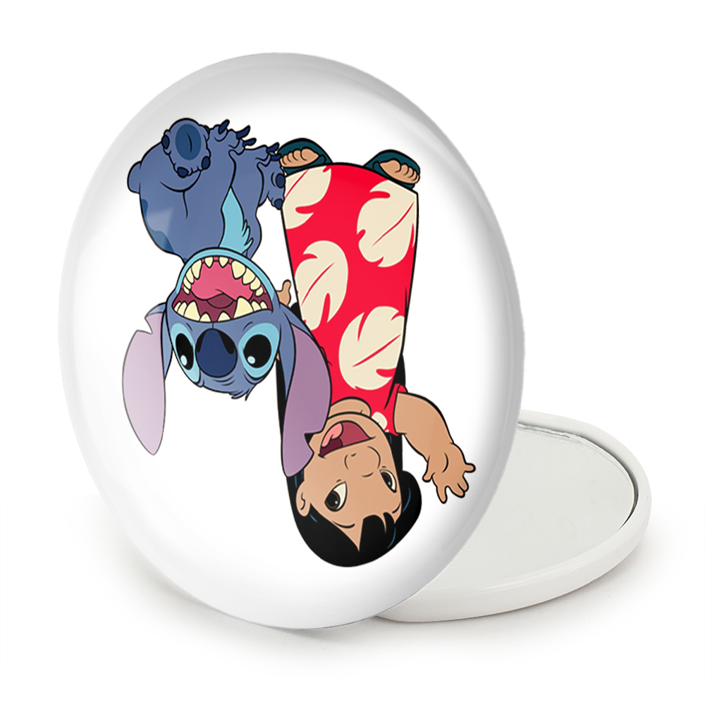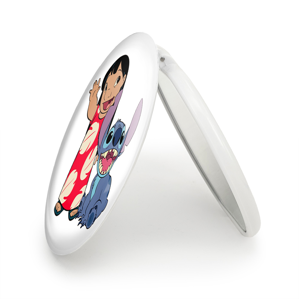 آینه های تاشو لیلو و استیچ خندالو، از جنس پلاستیک فشرده ABS تولید شده و به رنگ سفید می باشد. یکی از آینه ها ابعاد واقعی را نشان داده و دیگری با قابلیت بزرگنمایی، جزئیات را بهتر نمایش می دهد. ابعاد هر یک از آینه ها، دایره ای به قطر 7.5 سانت می باشد که نه خیلی بزرگ و غیر قابل استفاده در کیف آرایشی ست و نه خیلی کوچک که تصویر خاصی در آن مشاهده نشود. آینه تاشو لیلو و استیچ سایزی استاندارد و کارآمد دارد و در هر کیفی جا میگیرد. چاپ طرح بوسیله چاپگرهای دیجیتال شش رنگ با شفافیت و کیفیتی مثال زدنی بر روی یک وجه از بدنه ی آینه انجام گرفته و با روکش لمینت حرارتی پوشیده شده که در مقابل آسیب و خط و خش مقاوم بوده و کیفیت بالایی دارد. درب آینه بوسیله قفل بدنه ی آن، باز نمی ماند و کاملا بسته می شود و مناسب قرار گیری در کیف لوازم آرایش و کیف های کوچک دستی نیز هست. آینه های تاشو لیلو و استیچ خندالو با تنوع طرحی بسیار بالا، سلیقه هر نوع مخاطبی را تامین میکند.
