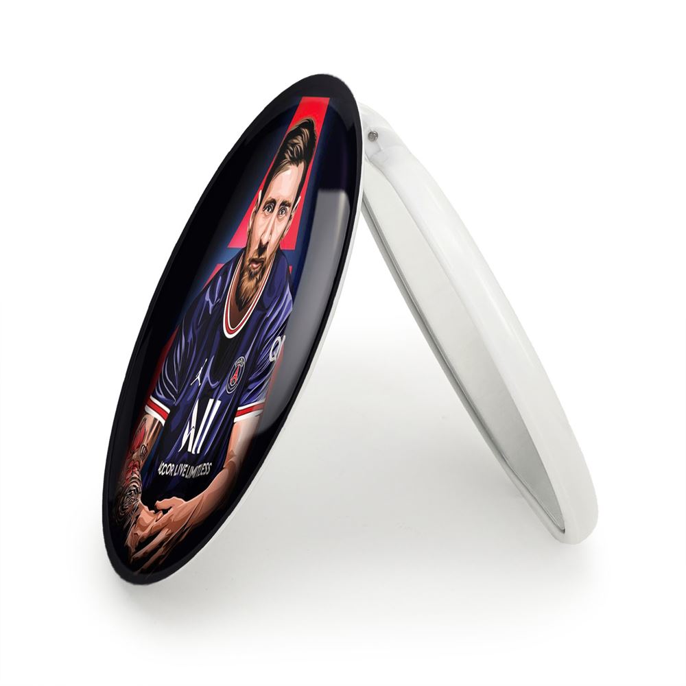 آینه های تاشو لیونل مسی خندالو، از جنس پلاستیک فشرده ABS تولید شده و به رنگ سفید می باشد. یکی از آینه ها ابعاد واقعی را نشان داده و دیگری با قابلیت بزرگنمایی، جزئیات را بهتر نمایش می دهد.