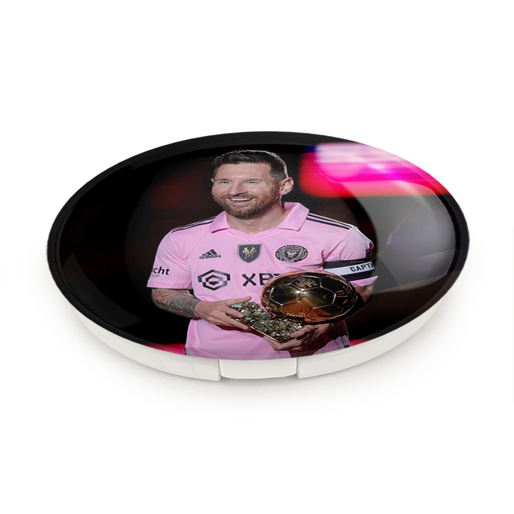 آینه های تاشو لیونل مسی خندالو، از جنس پلاستیک فشرده ABS تولید شده و به رنگ سفید می باشد. یکی از آینه ها ابعاد واقعی را نشان داده و دیگری با قابلیت بزرگنمایی، جزئیات را بهتر نمایش می دهد.