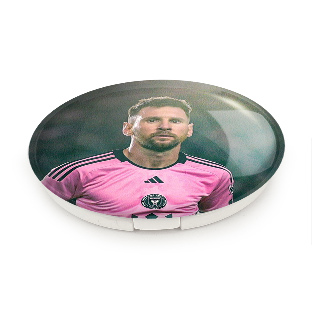 آینه های تاشو لیونل مسی خندالو، از جنس پلاستیک فشرده ABS تولید شده و به رنگ سفید می باشد. یکی از آینه ها ابعاد واقعی را نشان داده و دیگری با قابلیت بزرگنمایی، جزئیات را بهتر نمایش می دهد.