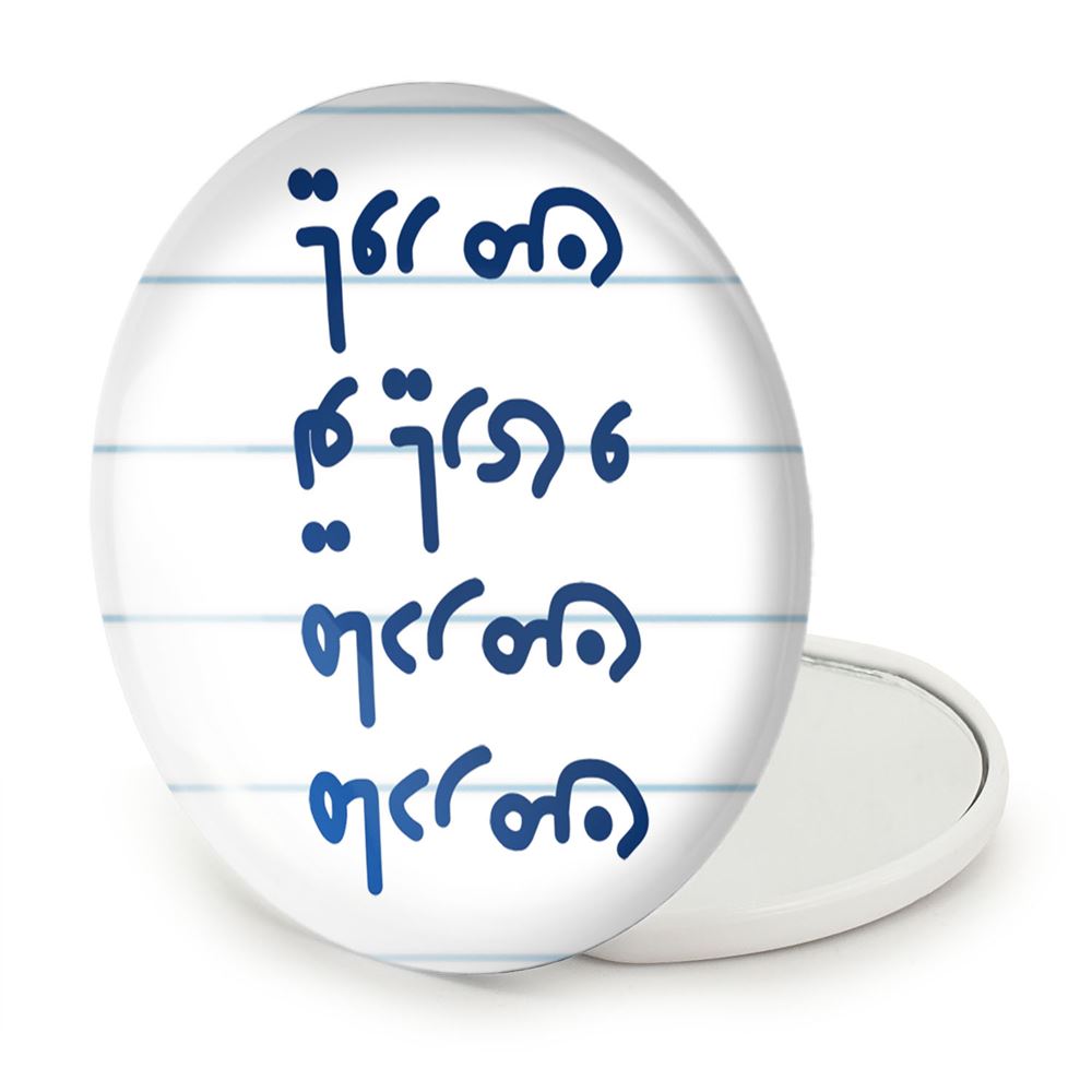 آینه های تاشو مادر من مادر من تو یاری و یاور من خندالو، از جنس پلاستیک فشرده ABS تولید شده و به رنگ سفید می باشد. یکی از آینه ها ابعاد واقعی را نشان داده و دیگری با قابلیت بزرگنمایی، جزئیات را بهتر نمایش می دهد. ابعاد هر یک از آینه ها، دایره ای به قطر 7.5 سانت می باشد که نه خیلی بزرگ و غیر قابل استفاده در کیف آرایشی ست و نه خیلی کوچک که تصویر خاصی در آن مشاهده نشود. آینه تاشو مادر من مادر من تو یاری و یاور من سایزی استاندارد و کارآمد دارد و در هر کیفی جا میگیرد. چاپ طرح بوسیله چاپگرهای دیجیتال شش رنگ با شفافیت و کیفیتی مثال زدنی بر روی یک وجه از بدنه ی آینه انجام گرفته و با روکش لمینت حرارتی پوشیده شده که در مقابل آسیب و خط و خش مقاوم بوده و کیفیت بالایی دارد. درب آینه بوسیله قفل بدنه ی آن، باز نمی ماند و کاملا بسته می شود و مناسب قرار گیری در کیف لوازم آرایش و کیف های کوچک دستی نیز هست. آینه های تاشو مادر من مادر من تو یاری و یاور من خندالو با تنوع طرحی بسیار بالا، سلیقه هر نوع مخاطبی را تامین میکند.