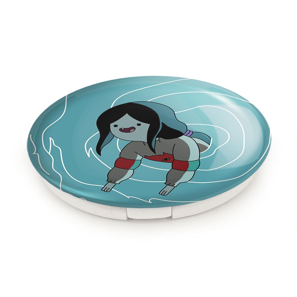 آینه های تاشو مارسلین وقت ماجراجویی Adventure Time خندالو، از جنس پلاستیک فشرده ABS تولید شده و به رنگ سفید می باشد. یکی از آینه ها ابعاد واقعی را نشان داده و دیگری با قابلیت بزرگنمایی، جزئیات را بهتر نمایش می دهد. ابعاد هر یک از آینه ها، دایره ای به قطر 7.5 سانت می باشد که نه خیلی بزرگ و غیر قابل استفاده در کیف آرایشی ست و نه خیلی کوچک که تصویر خاصی در آن مشاهده نشود. آینه تاشو مارسلین وقت ماجراجویی Adventure Time سایزی استاندارد و کارآمد دارد و در هر کیفی جا میگیرد. چاپ طرح بوسیله چاپگرهای دیجیتال شش رنگ با شفافیت و کیفیتی مثال زدنی بر روی یک وجه از بدنه ی آینه انجام گرفته و با روکش لمینت حرارتی پوشیده شده که در مقابل آسیب و خط و خش مقاوم بوده و کیفیت بالایی دارد. درب آینه بوسیله قفل بدنه ی آن، باز نمی ماند و کاملا بسته می شود و مناسب قرار گیری در کیف لوازم آرایش و کیف های کوچک دستی نیز هست. آینه های تاشو مارسلین وقت ماجراجویی Adventure Time خندالو با تنوع طرحی بسیار بالا، سلیقه هر نوع مخاطبی را تامین میکند.