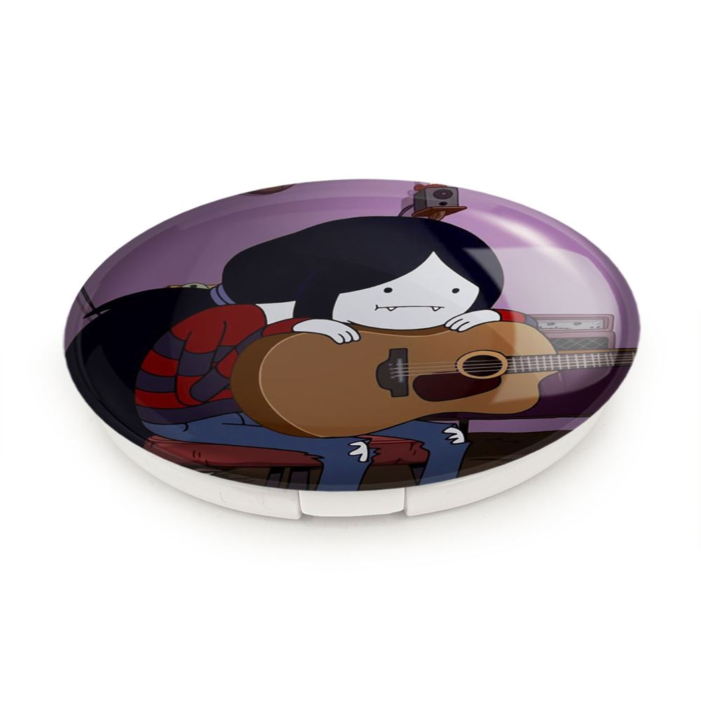 آینه های تاشو مارسلین وقت ماجراجویی Adventure Time خندالو، از جنس پلاستیک فشرده ABS تولید شده و به رنگ سفید می باشد. یکی از آینه ها ابعاد واقعی را نشان داده و دیگری با قابلیت بزرگنمایی، جزئیات را بهتر نمایش می دهد. ابعاد هر یک از آینه ها، دایره ای به قطر 7.5 سانت می باشد که نه خیلی بزرگ و غیر قابل استفاده در کیف آرایشی ست و نه خیلی کوچک که تصویر خاصی در آن مشاهده نشود. آینه تاشو مارسلین وقت ماجراجویی Adventure Time سایزی استاندارد و کارآمد دارد و در هر کیفی جا میگیرد. چاپ طرح بوسیله چاپگرهای دیجیتال شش رنگ با شفافیت و کیفیتی مثال زدنی بر روی یک وجه از بدنه ی آینه انجام گرفته و با روکش لمینت حرارتی پوشیده شده که در مقابل آسیب و خط و خش مقاوم بوده و کیفیت بالایی دارد. درب آینه بوسیله قفل بدنه ی آن، باز نمی ماند و کاملا بسته می شود و مناسب قرار گیری در کیف لوازم آرایش و کیف های کوچک دستی نیز هست. آینه های تاشو مارسلین وقت ماجراجویی Adventure Time خندالو با تنوع طرحی بسیار بالا، سلیقه هر نوع مخاطبی را تامین میکند.