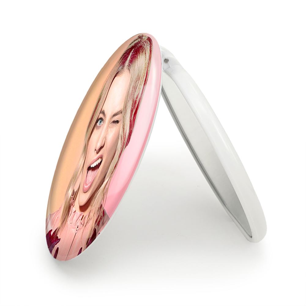 آینه های تاشو مارگو رابی Margot Robbie خندالو، از جنس پلاستیک فشرده ABS تولید شده و به رنگ سفید می باشد. یکی از آینه ها ابعاد واقعی را نشان داده و دیگری با قابلیت بزرگنمایی، جزئیات را بهتر نمایش می دهد. ابعاد هر یک از آینه ها، دایره ای به قطر 7.5 سانت می باشد که نه خیلی بزرگ و غیر قابل استفاده در کیف آرایشی ست و نه خیلی کوچک که تصویر خاصی در آن مشاهده نشود. آینه تاشو مارگو رابی Margot Robbie سایزی استاندارد و کارآمد دارد و در هر کیفی جا میگیرد. چاپ طرح بوسیله چاپگرهای دیجیتال شش رنگ با شفافیت و کیفیتی مثال زدنی بر روی یک وجه از بدنه ی آینه انجام گرفته و با روکش لمینت حرارتی پوشیده شده که در مقابل آسیب و خط و خش مقاوم بوده و کیفیت بالایی دارد. درب آینه بوسیله قفل بدنه ی آن، باز نمی ماند و کاملا بسته می شود و مناسب قرار گیری در کیف لوازم آرایش و کیف های کوچک دستی نیز هست. آینه های تاشو مارگو رابی Margot Robbie خندالو با تنوع طرحی بسیار بالا، سلیقه هر نوع مخاطبی را تامین میکند.