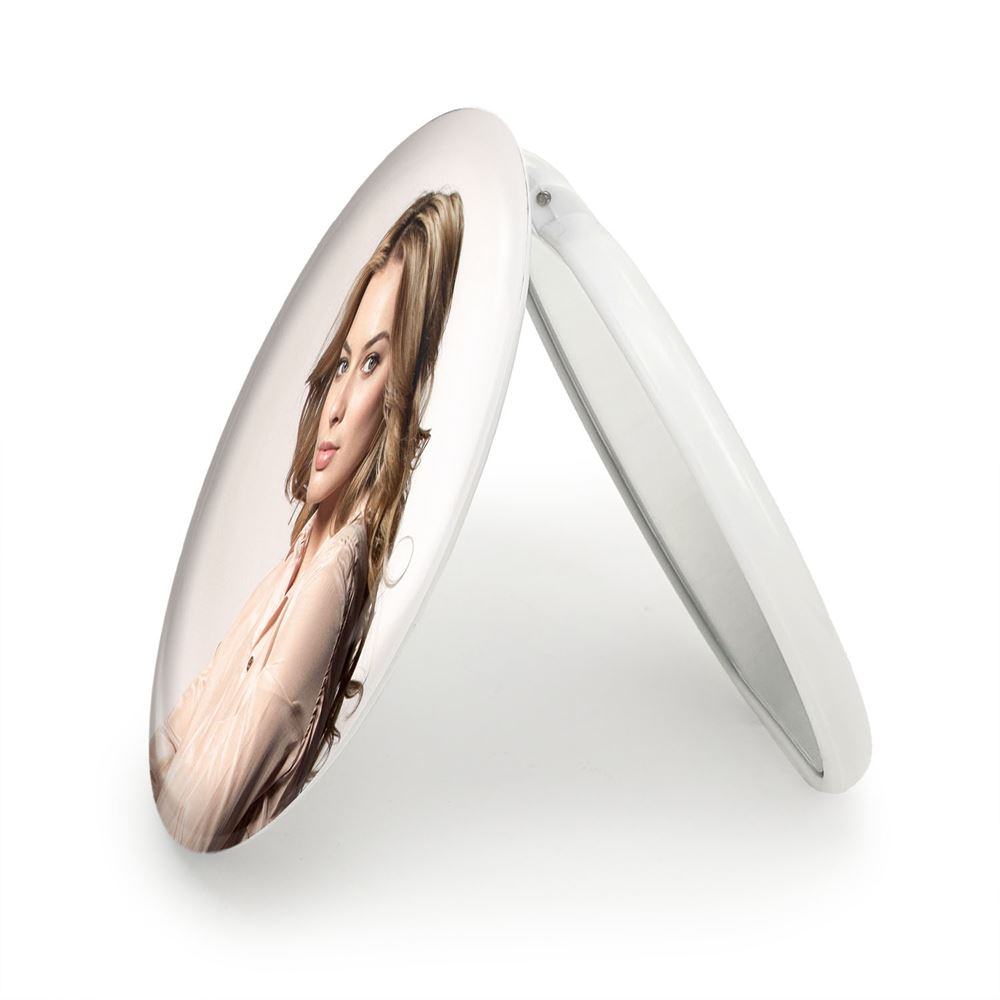 آینه های تاشو مارگو رابی Margot Robbie خندالو، از جنس پلاستیک فشرده ABS تولید شده و به رنگ سفید می باشد. یکی از آینه ها ابعاد واقعی را نشان داده و دیگری با قابلیت بزرگنمایی، جزئیات را بهتر نمایش می دهد. ابعاد هر یک از آینه ها، دایره ای به قطر 7.5 سانت می باشد که نه خیلی بزرگ و غیر قابل استفاده در کیف آرایشی ست و نه خیلی کوچک که تصویر خاصی در آن مشاهده نشود. آینه تاشو مارگو رابی Margot Robbie سایزی استاندارد و کارآمد دارد و در هر کیفی جا میگیرد. چاپ طرح بوسیله چاپگرهای دیجیتال شش رنگ با شفافیت و کیفیتی مثال زدنی بر روی یک وجه از بدنه ی آینه انجام گرفته و با روکش لمینت حرارتی پوشیده شده که در مقابل آسیب و خط و خش مقاوم بوده و کیفیت بالایی دارد. درب آینه بوسیله قفل بدنه ی آن، باز نمی ماند و کاملا بسته می شود و مناسب قرار گیری در کیف لوازم آرایش و کیف های کوچک دستی نیز هست. آینه های تاشو مارگو رابی Margot Robbie خندالو با تنوع طرحی بسیار بالا، سلیقه هر نوع مخاطبی را تامین میکند.