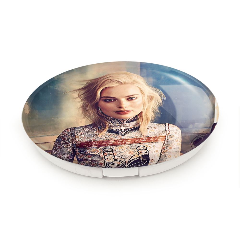آینه های تاشو مارگو رابی Margot Robbie خندالو، از جنس پلاستیک فشرده ABS تولید شده و به رنگ سفید می باشد. یکی از آینه ها ابعاد واقعی را نشان داده و دیگری با قابلیت بزرگنمایی، جزئیات را بهتر نمایش می دهد.