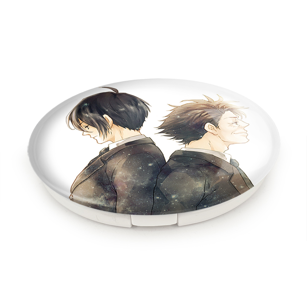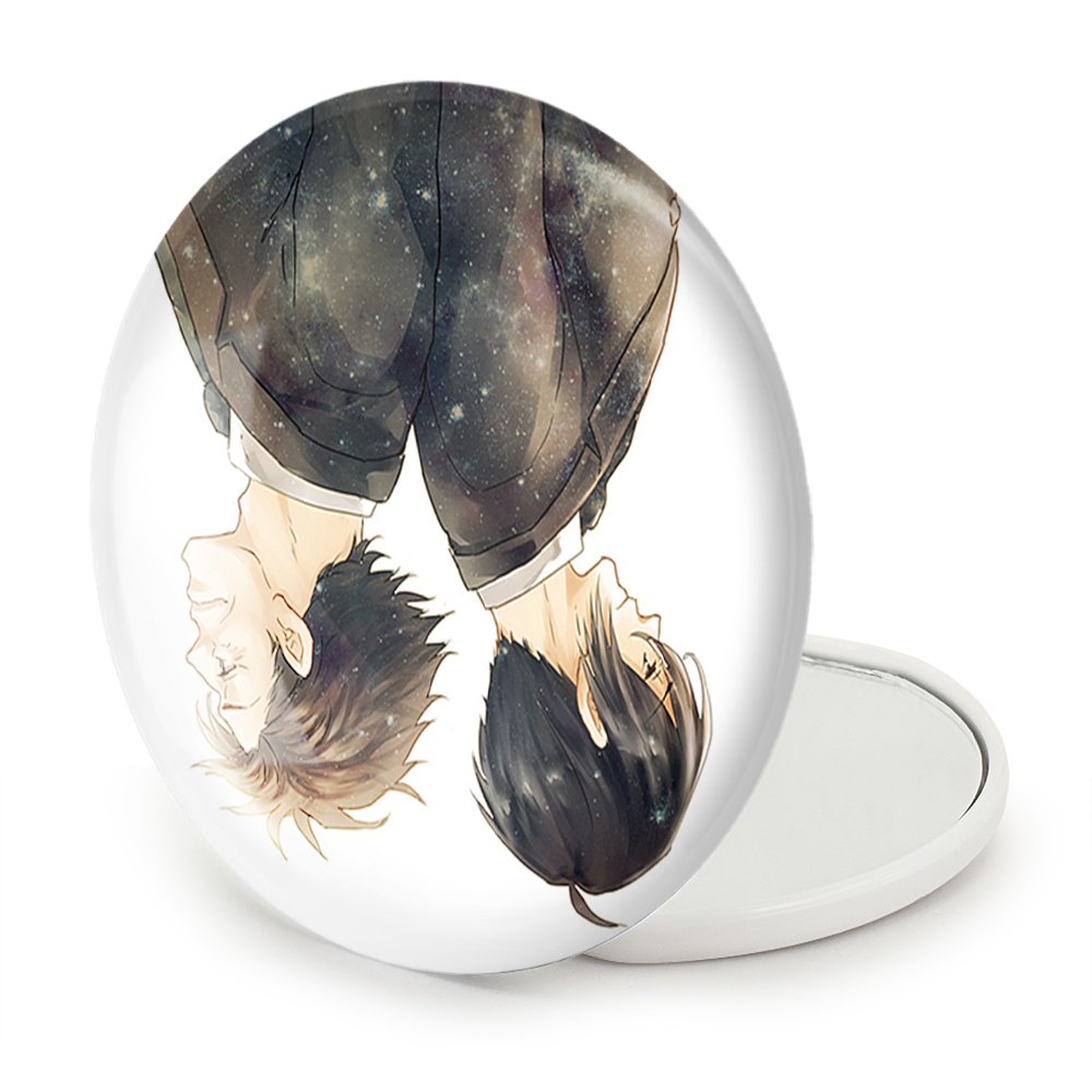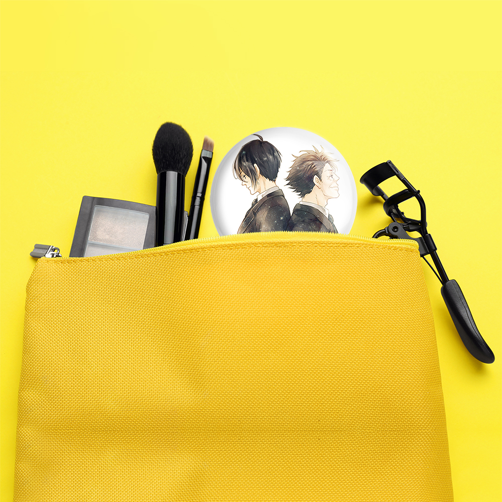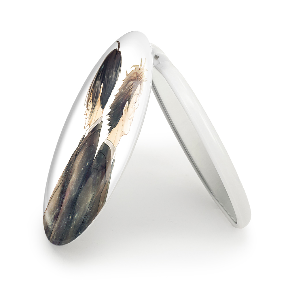 آینه های تاشو ماسائوکا و نوبوچیکا انیمه روان گذر خندالو، از جنس پلاستیک فشرده ABS تولید شده و به رنگ سفید می باشد. یکی از آینه ها ابعاد واقعی را نشان داده و دیگری با قابلیت بزرگنمایی، جزئیات را بهتر نمایش می دهد. ابعاد هر یک از آینه ها، دایره ای به قطر 7.5 سانت می باشد که نه خیلی بزرگ و غیر قابل استفاده در کیف آرایشی ست و نه خیلی کوچک که تصویر خاصی در آن مشاهده نشود. آینه تاشو ماسائوکا و نوبوچیکا انیمه روان گذر سایزی استاندارد و کارآمد دارد و در هر کیفی جا میگیرد. چاپ طرح بوسیله چاپگرهای دیجیتال شش رنگ با شفافیت و کیفیتی مثال زدنی بر روی یک وجه از بدنه ی آینه انجام گرفته و با روکش لمینت حرارتی پوشیده شده که در مقابل آسیب و خط و خش مقاوم بوده و کیفیت بالایی دارد. درب آینه بوسیله قفل بدنه ی آن، باز نمی ماند و کاملا بسته می شود و مناسب قرار گیری در کیف لوازم آرایش و کیف های کوچک دستی نیز هست. آینه های تاشو ماسائوکا و نوبوچیکا انیمه روان گذر خندالو با تنوع طرحی بسیار بالا، سلیقه هر نوع مخاطبی را تامین میکند.